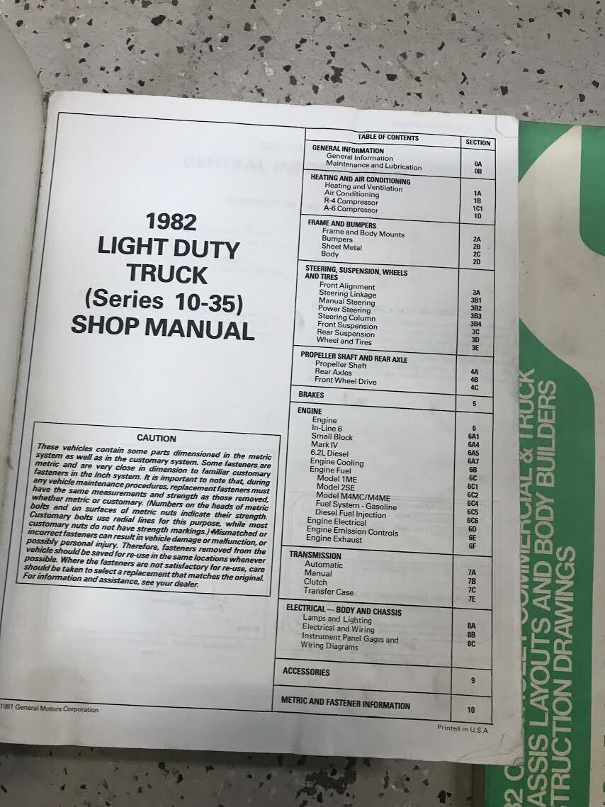 1982 Factory Chevrolet Light Duty Truck 10 thru 30 Series Service Manual Body Builders Manual