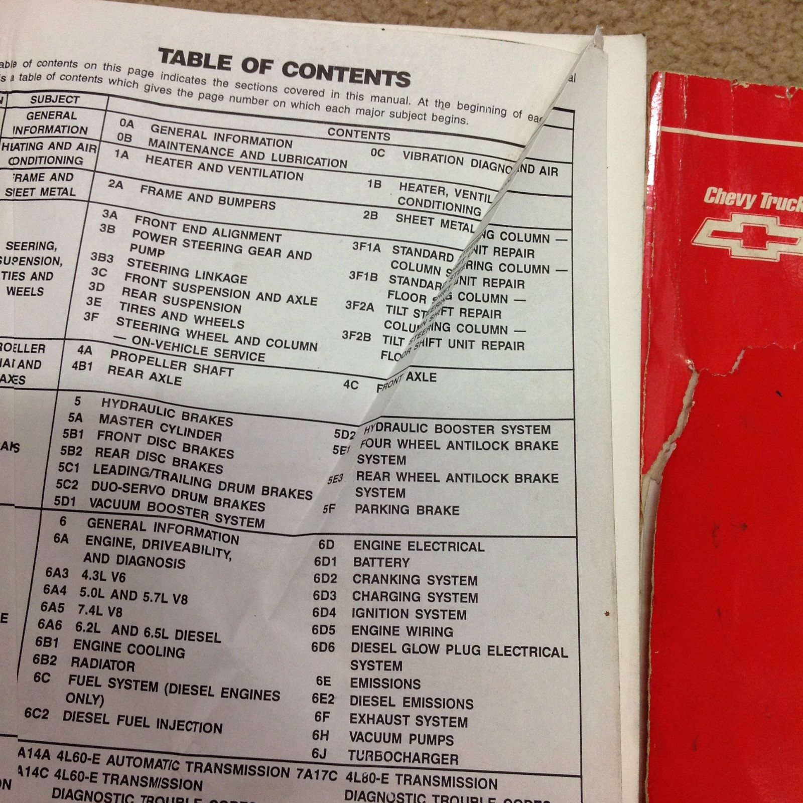 1993 Manuale di servizio dei modelli di camion Chevrolet CK, Manuale di cablaggio elettrico, manuale di combustibile per camion e emissioni