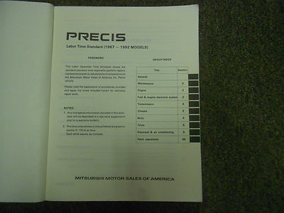 1987-1992 Mitsubishi Precis Labor Time Standard Manual