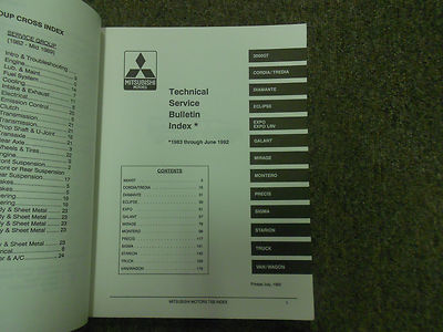 1983-1992 MANUALE INDICE BOLLETTINO DI SERVIZIO DEL SERVIZIO DELLA MITSUBISHI