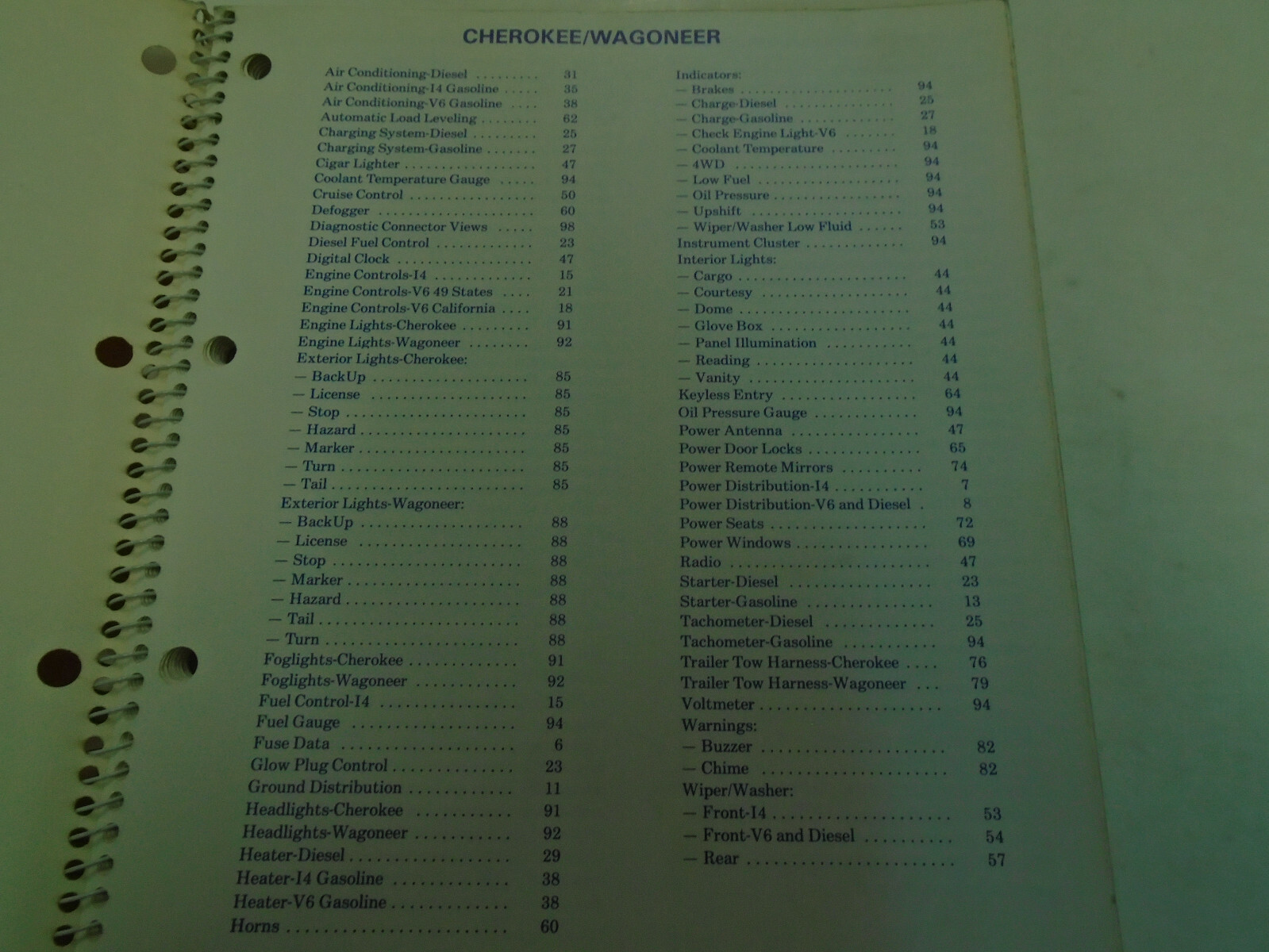 1986 Jeep Cherokee Wagoneer Manuale di risoluzione dei problemi elettrici OEM ETM Factory