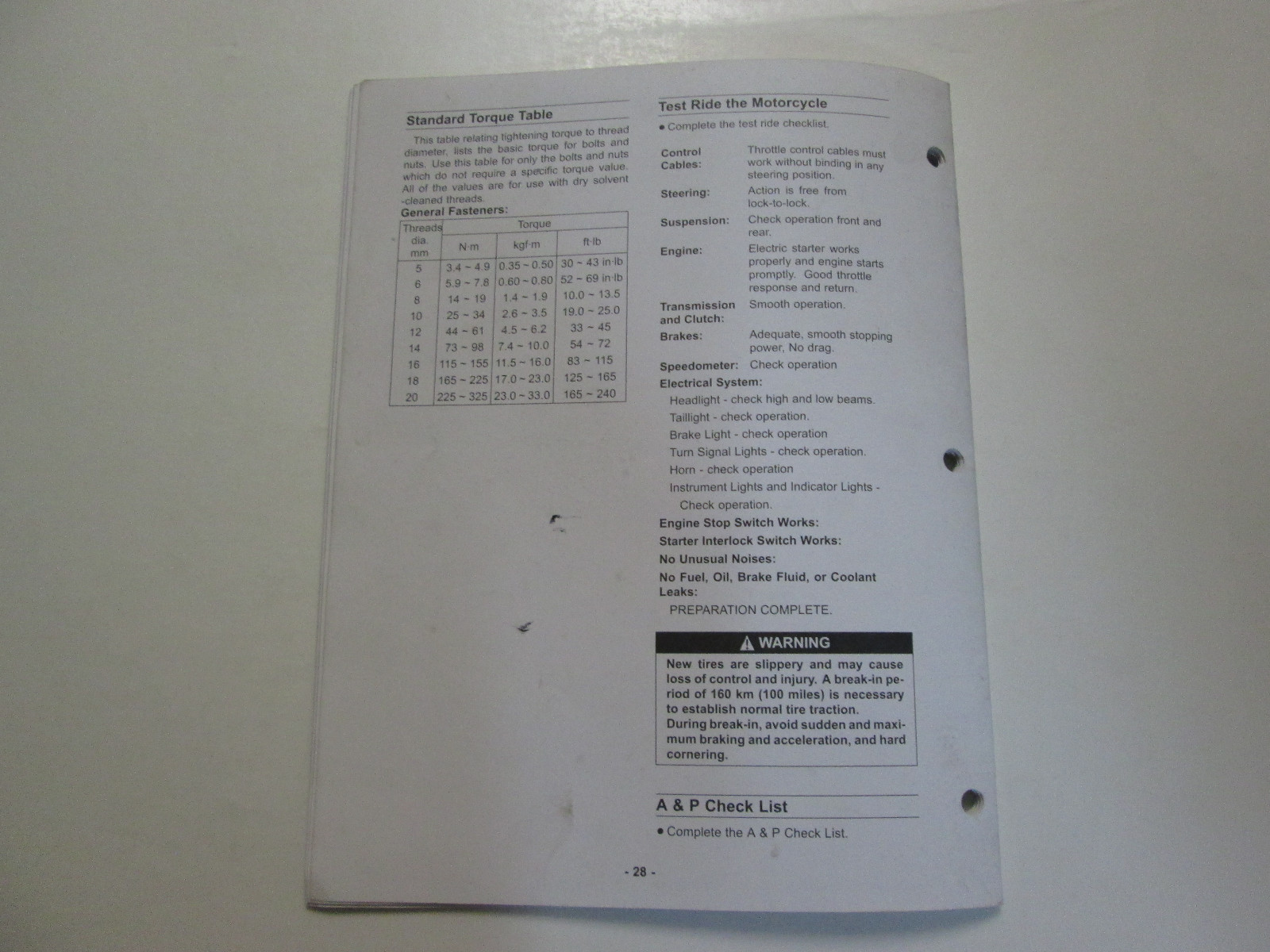 1996 Kawasaki Generale Moto Montaggio e Preparazione Manuale Fabbrica OEM Affare