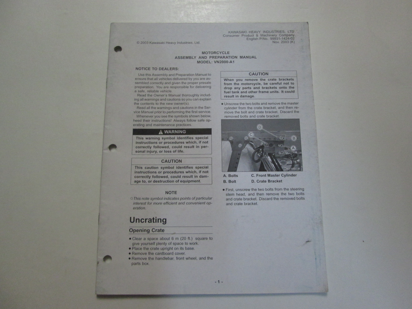 2003 Kawasaki Moto VN1600 B1 Montaggio e Preparazione Manuale Minor Macchie 03