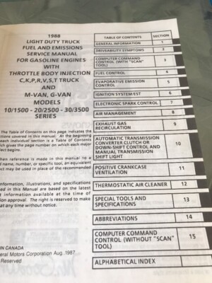 1988 GMC Light Duty Truck Fuel ed Emissions incluso Manuale dei motori a gas iniettati per la guidabilita
