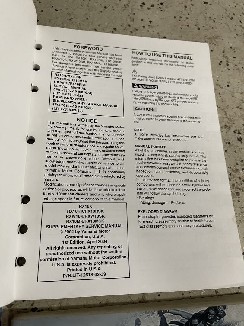 2002 2003 2004 Yamaha Snowmobile Models Rx Models Service Shop Manual, Supplement Manual, Training Manual e Technical Aggiornamento