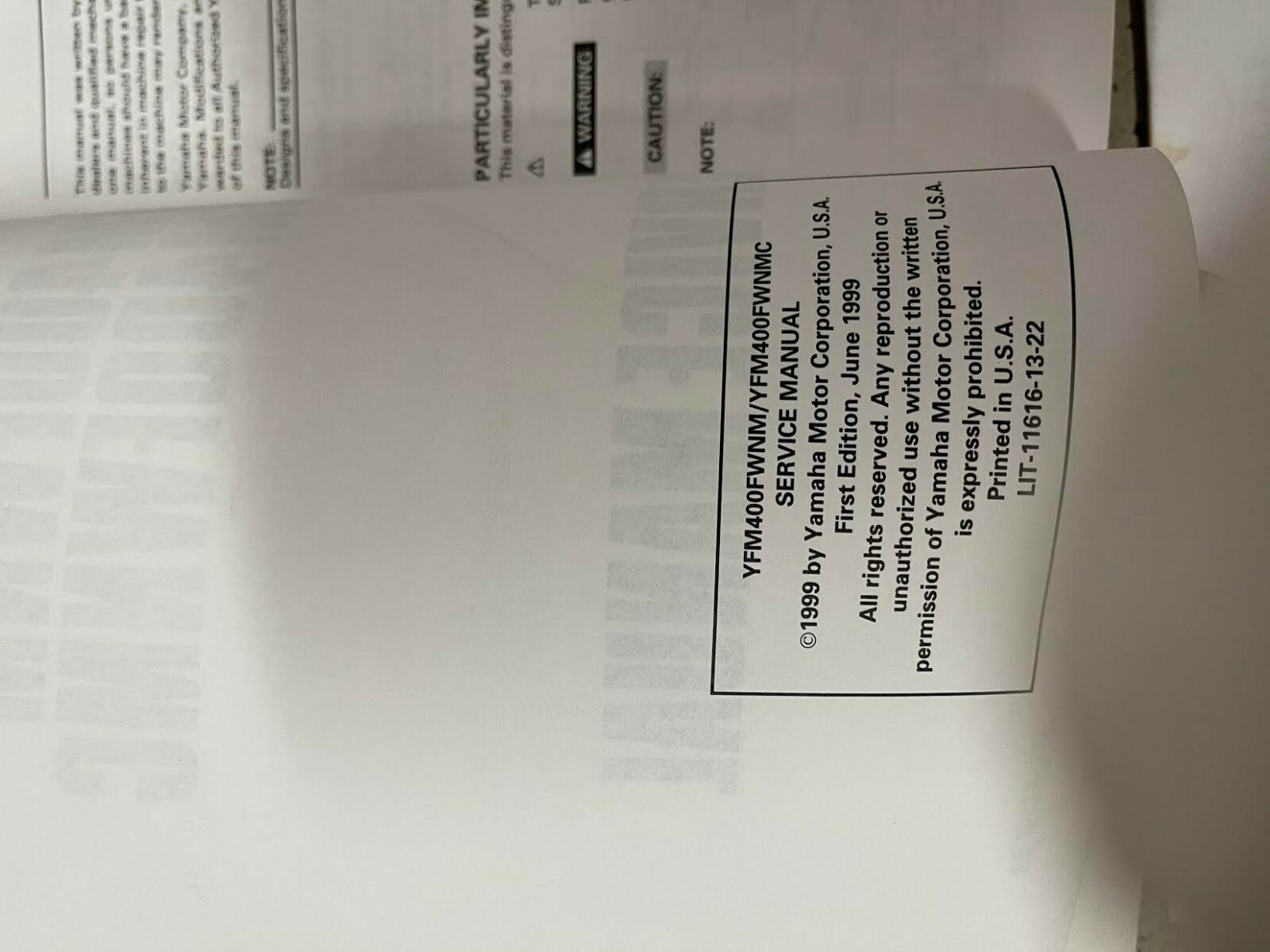 Data del copyright 1999yamaha yfm400fwnm/nmc shop manuale di riparazione di servizi OEM, supplemento manuale di servizio e manuale di assemblaggio