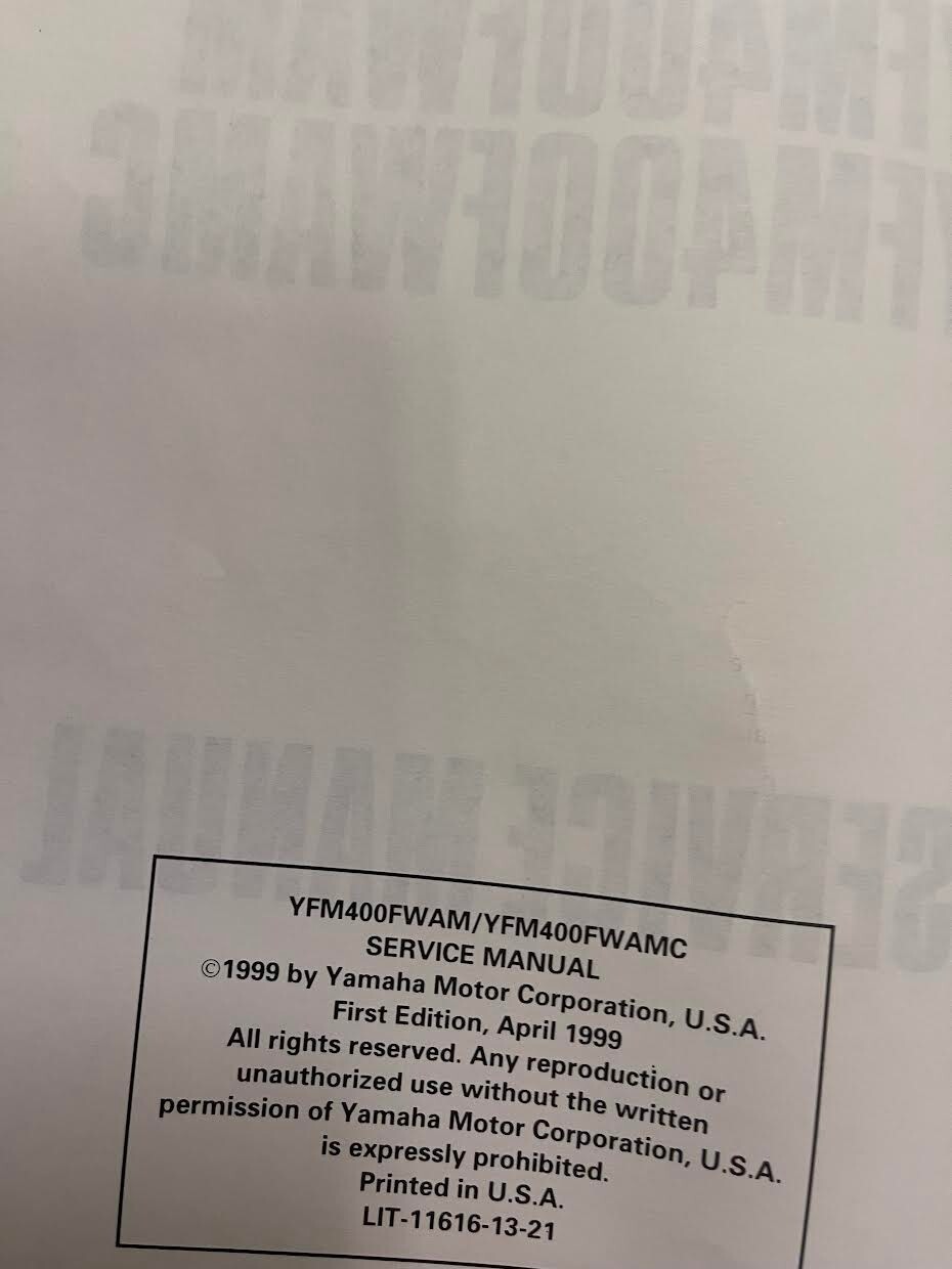 Manuale Di Riparazione E Servizio OEM Set Yamaha YFM400FWNM/NMC 1999 2000 2001