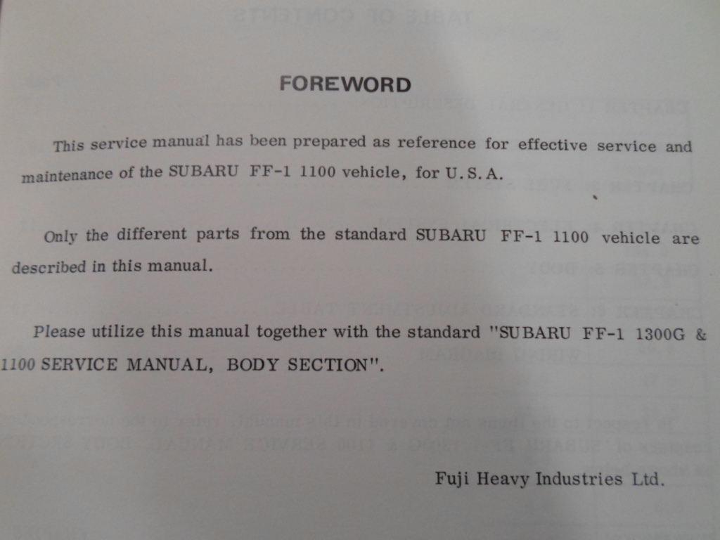 1970-1971 Manuale di servizio del corpo Subaru 1100