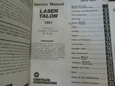 1991 Manuale di servizio Laser / Talon Plymouth danneggiato