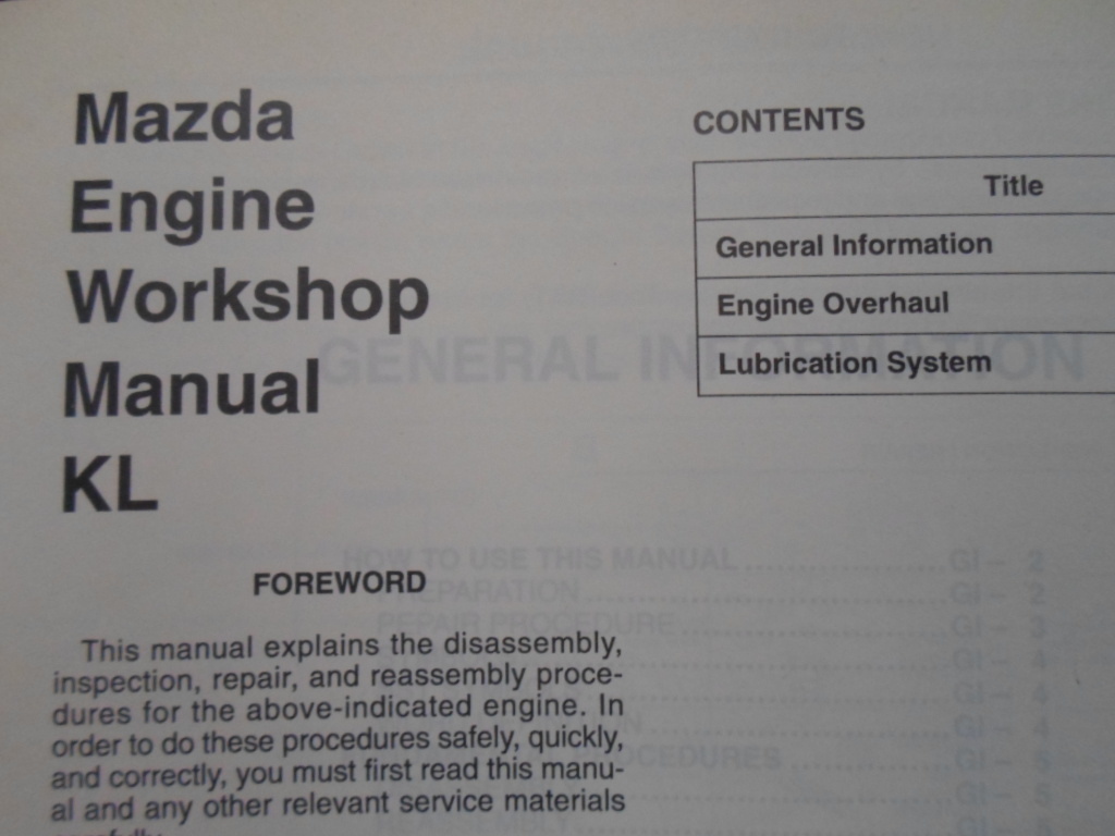 Manuale Di Officina E Riparazione Del Motore KL Mazda 1997 OEM FABBRICA 97 X