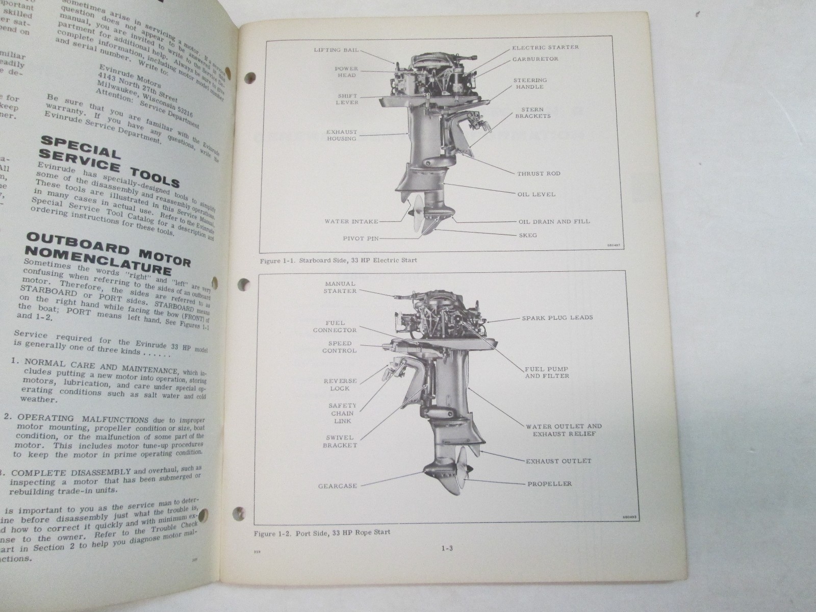 1969 EVINRUDE SERVIZIO RIPARAZIONE DEL SERVIZIO MANUALE SAPE SKIN SKIN SKI-TWIN ELETTRIC 33 CV