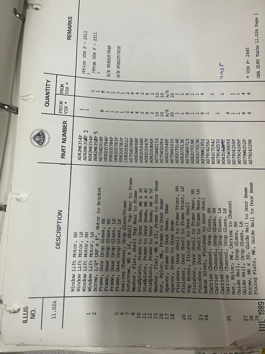 1983 1984 1985 1986 1987 Esprit Turbo Servizio Parti List Manuale Libro OEM