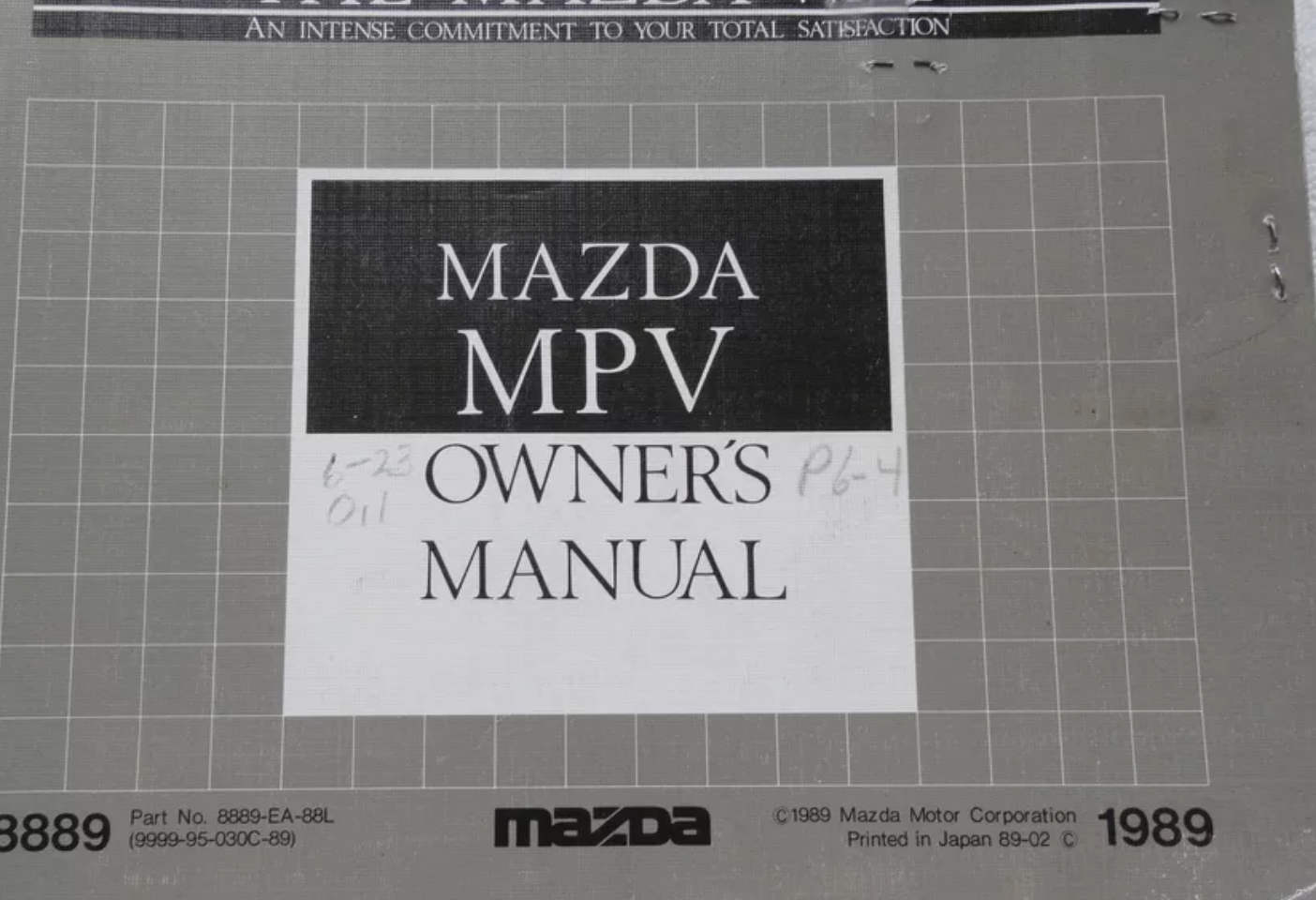 1989 Mazda MPV Operatori Proprietari Manuale OEM 9999-95-030C-89
