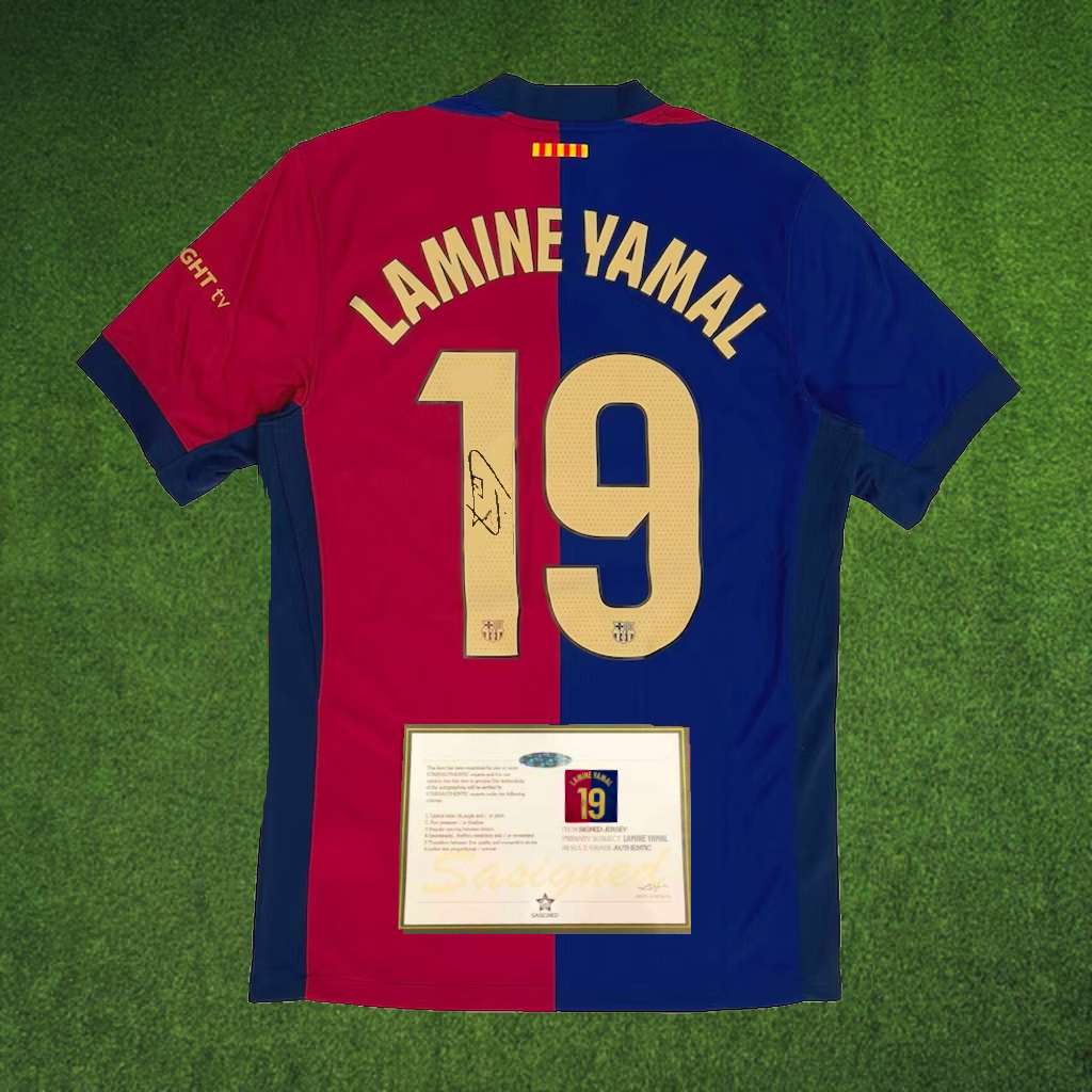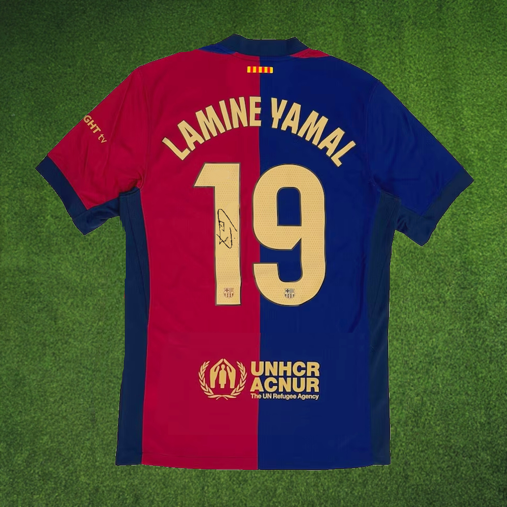 *As Yamal's signature is printed on not hand-signed, it's perfect for framing or displaying and can even be worn!*