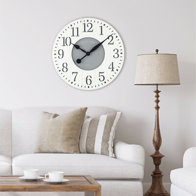 Large White, Rich Grey & Silver 24" Oversized Wall Clock , Quartz Movement -NEW