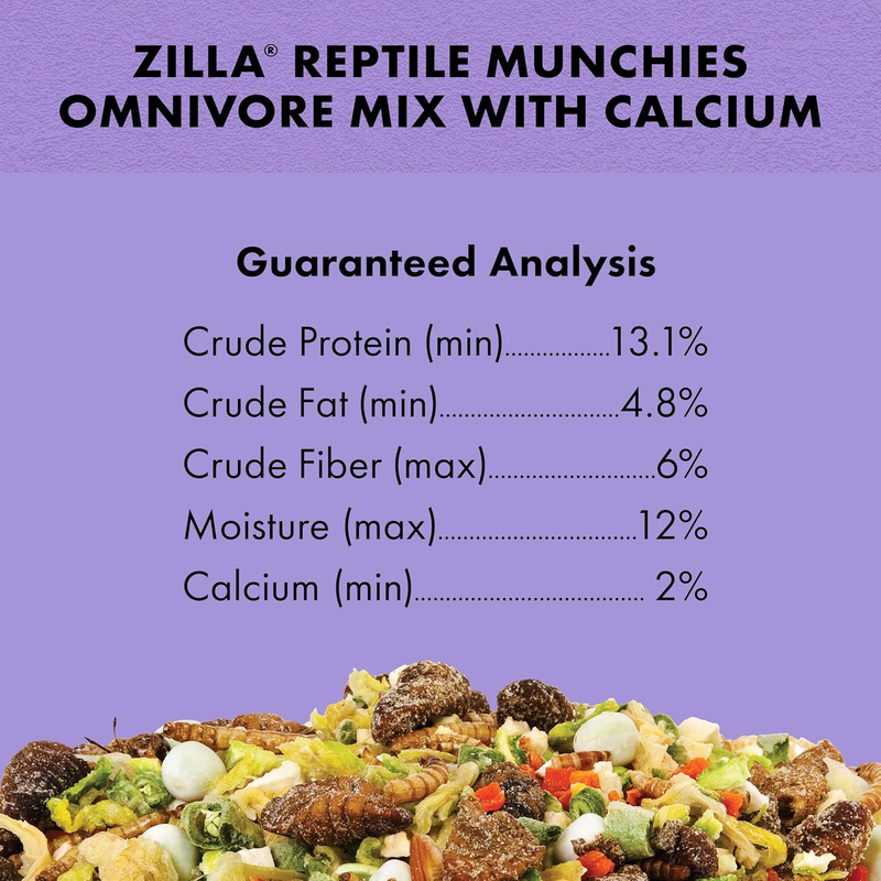 Reptile Food Munchies Omnivore Mix with Calcium for Bearded Dragons, Water Drag