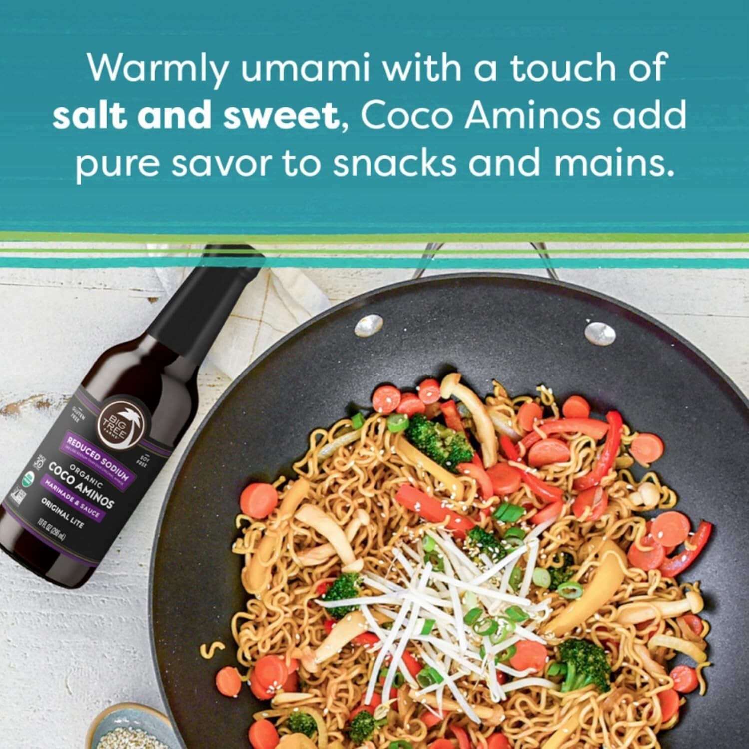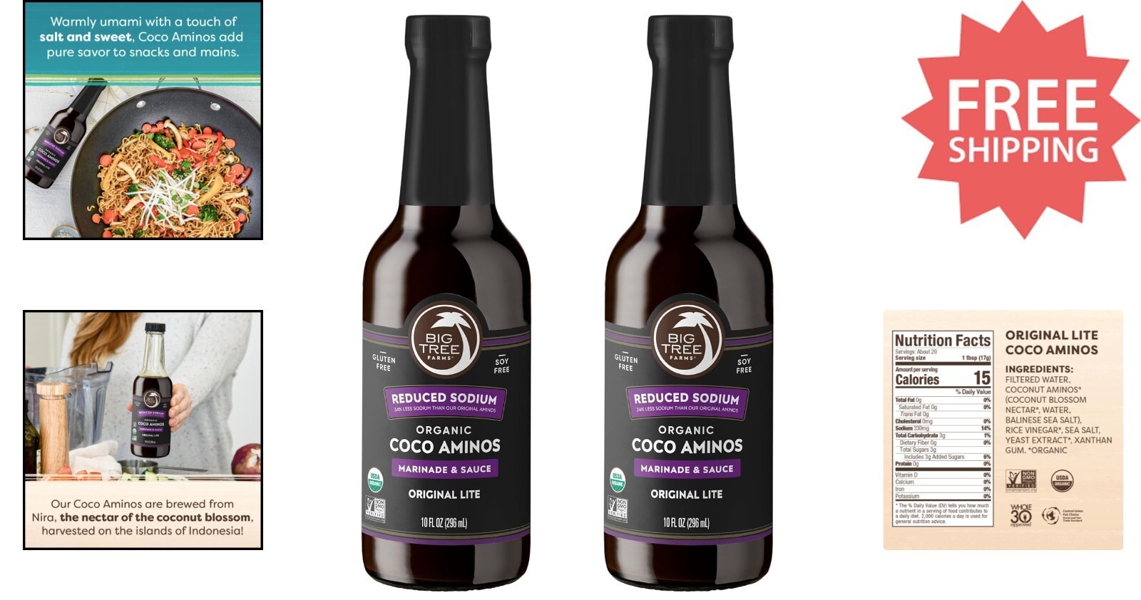 Experience the flavorful versatility of our Coco Aminos, a soy sauce alternative rich in vital amino acids and lower in glycemic index with nearly half the sodium of traditional soy sauce. Made from organic coconut blossom nectar and Balinese sea salt, this gluten-free, soy-free seasoning offers a warm umami flavor, 34% less sodium, and 50% fewer calories than our Coco Aminos. Perfect as a seasoning, marinade, glaze, or dipping sauce, it enhances any dish with clean, healthy ingredients. Our commitment extends beyond flavor?support sustainable coconut farming and positively impact communities around the world.