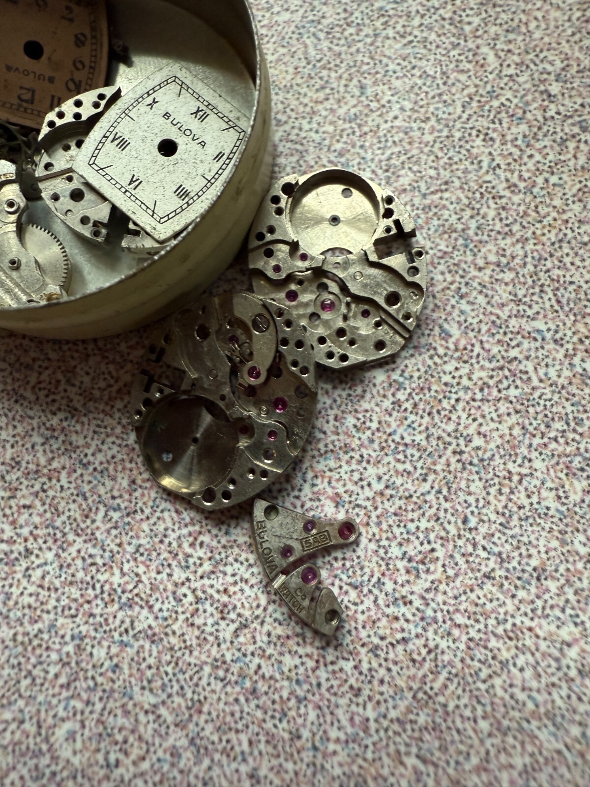Vintage Art Deco Ladies Bulova Watch Parts LOT Dial, Movement Bronze AS 1012 5AB