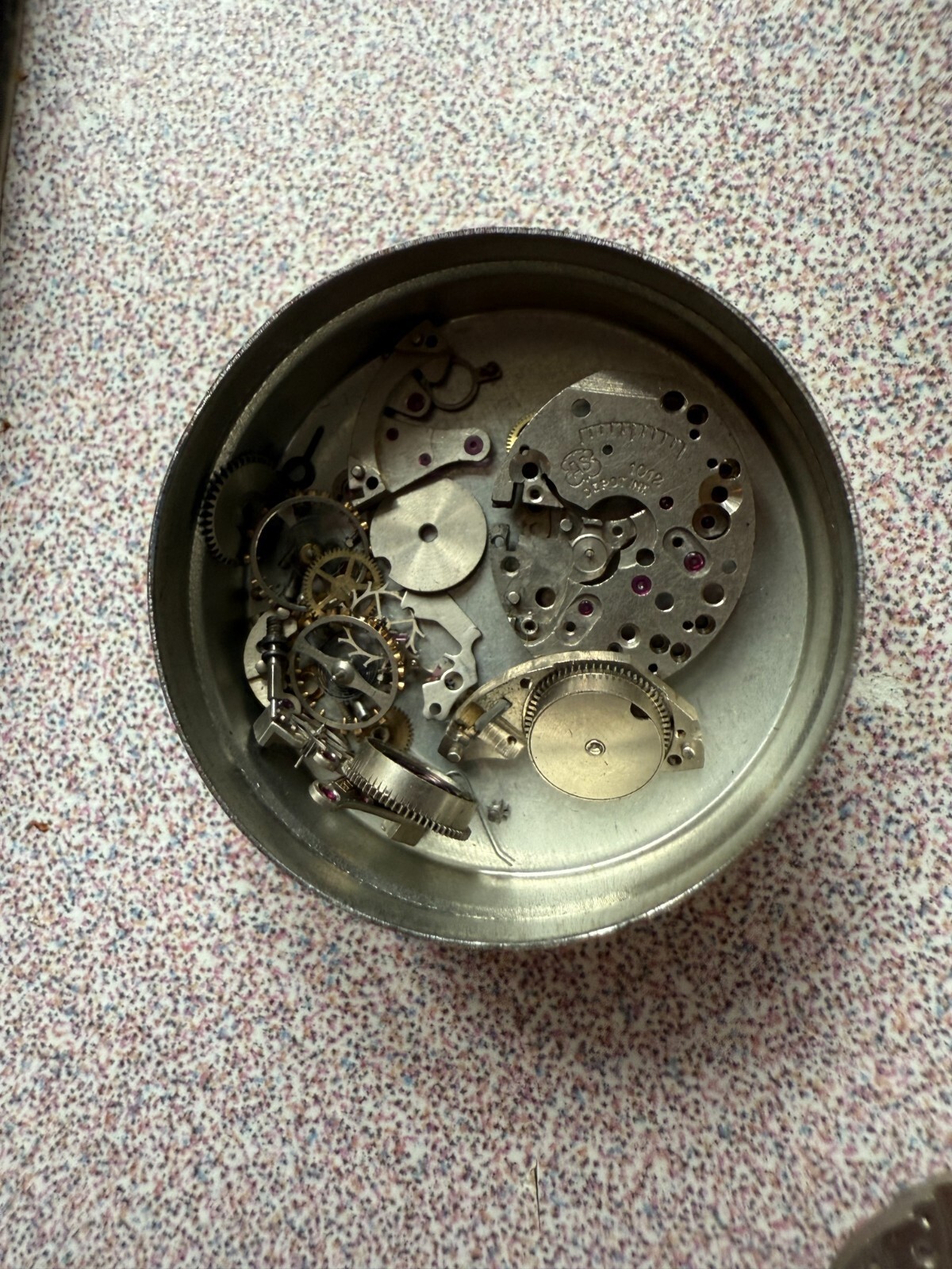 Vintage Art Deco Ladies Bulova Watch Parts LOT Dial, Movement Bronze AS 1012 5AB NOTE you get the tin it came in. Dial is small 10mm wide by 11mm this is a piece of history. If you are into old watches this is a good parts lot If you fix old watches you are in luck. I am not an expert on watches. I bought a big lot of old watch parts from a family watch-repair business that went to auction. They had been in business for 100 years. PLEASE - check out my other vintage watch parts we will be listing more over the next number of months. I will give you a deal if you want multiple orders!! FREE USA SHIP