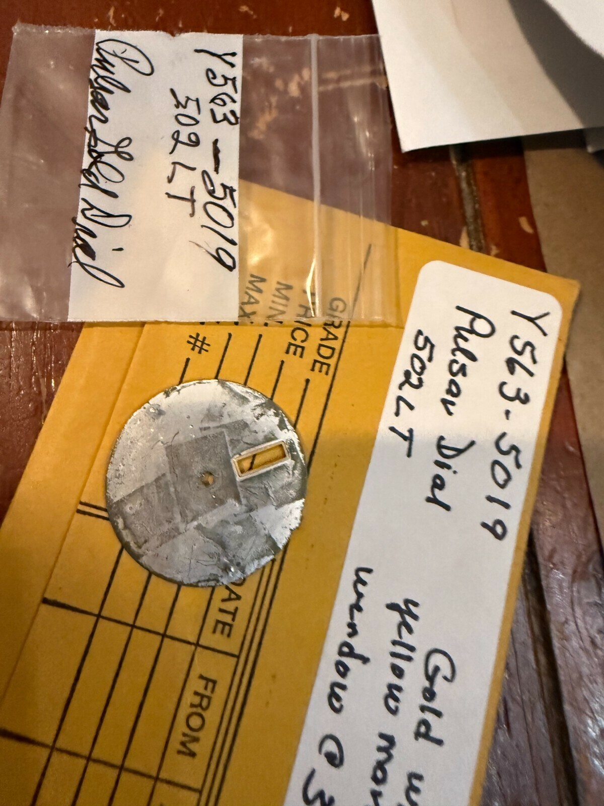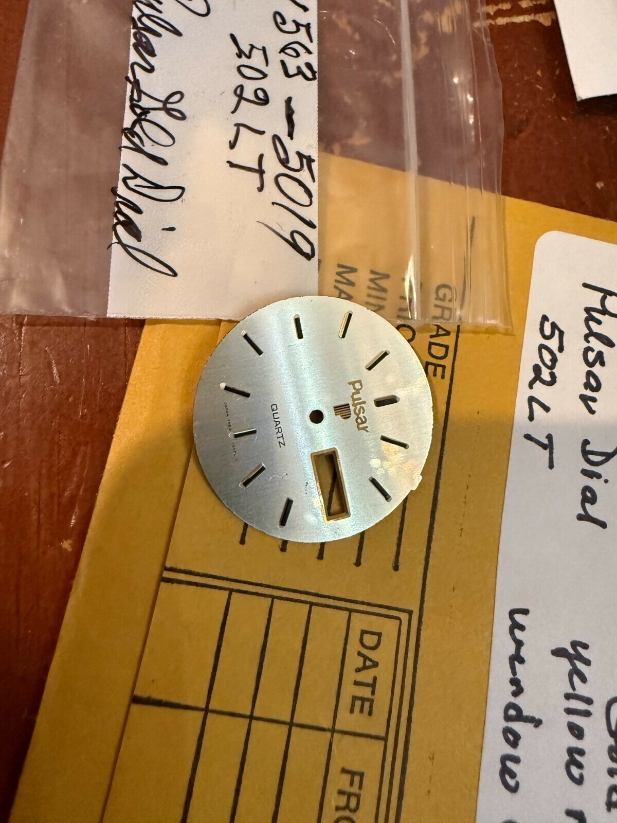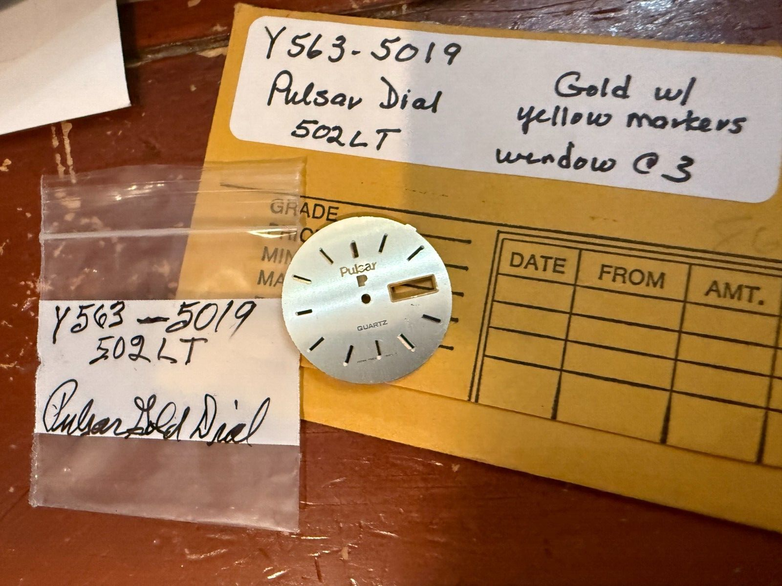 NEW VTG 1980's Men's Pulsar Watch Gold Quartz Dial w/ window 30mm # Y563-5019 28 mm this is a piece of history. If you fix old watches you are in luck. I am not an expert on watches. I bought a big lot of old watch parts from a family watch-repair business that went to auction. They had been in business for 100 years. PLEASE - check out my other vintage watch parts we will be listing more over the next number of months. I will give you a deal if you want multiple orders!! FREE USA SHIP