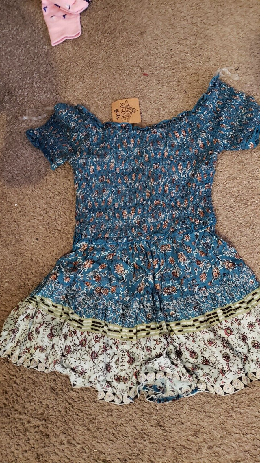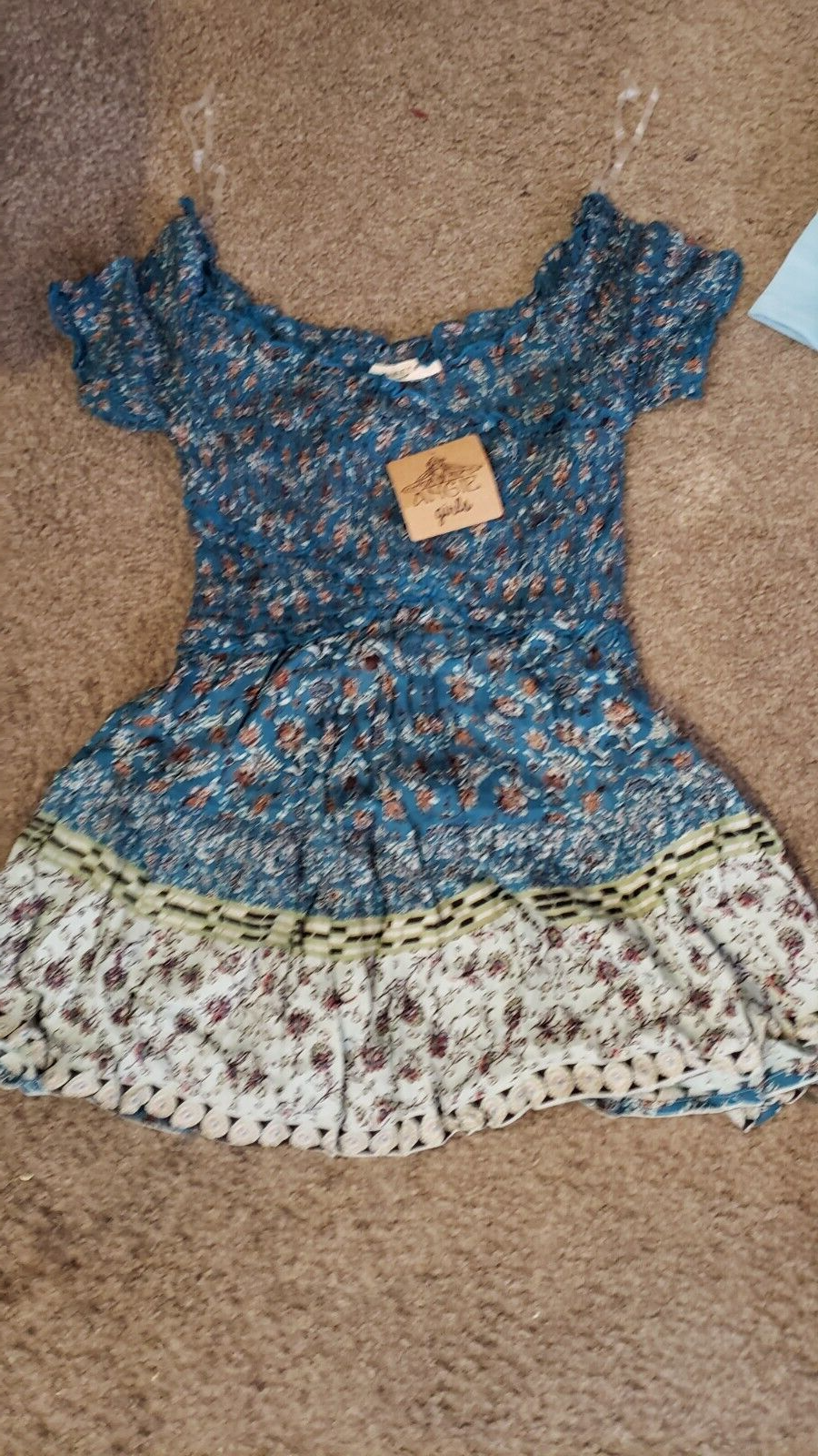 NWT Angie Girls Smocked Top Dress Floral Paisley Stretch Blue Boho Sz- 12-14 L This is a a great top/dress. This is labeled as girls Large. Not sure what that means. fits my girl and she is12. Could be a dress for smaller girl 8-10. Or top for someone10-14. Please look at dimensions and you will see. Condition: Excellent dimensions Dress: -Arm Pit to armpit across chest - 12-13 in total length - approx. 22-23 inches FREE SHIP - please check out my other youth clothes!!!!