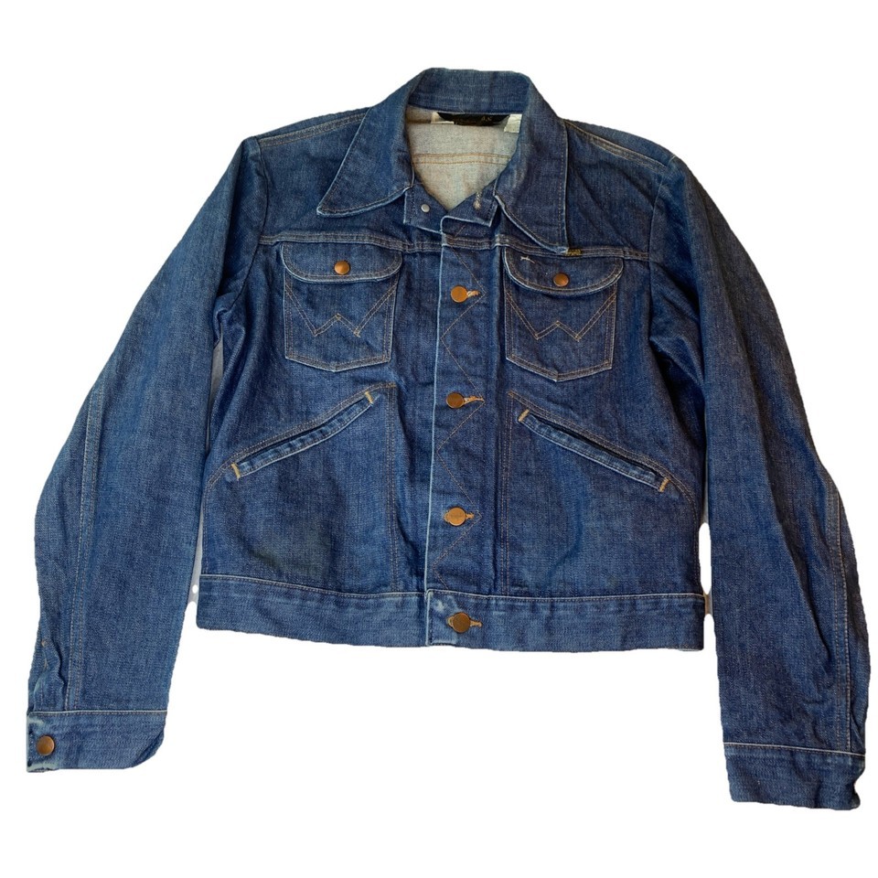Vintage 1970s Wrangler 124mj Dark Wash Denim Jacket Size 40 Sanforized 14oz Plu