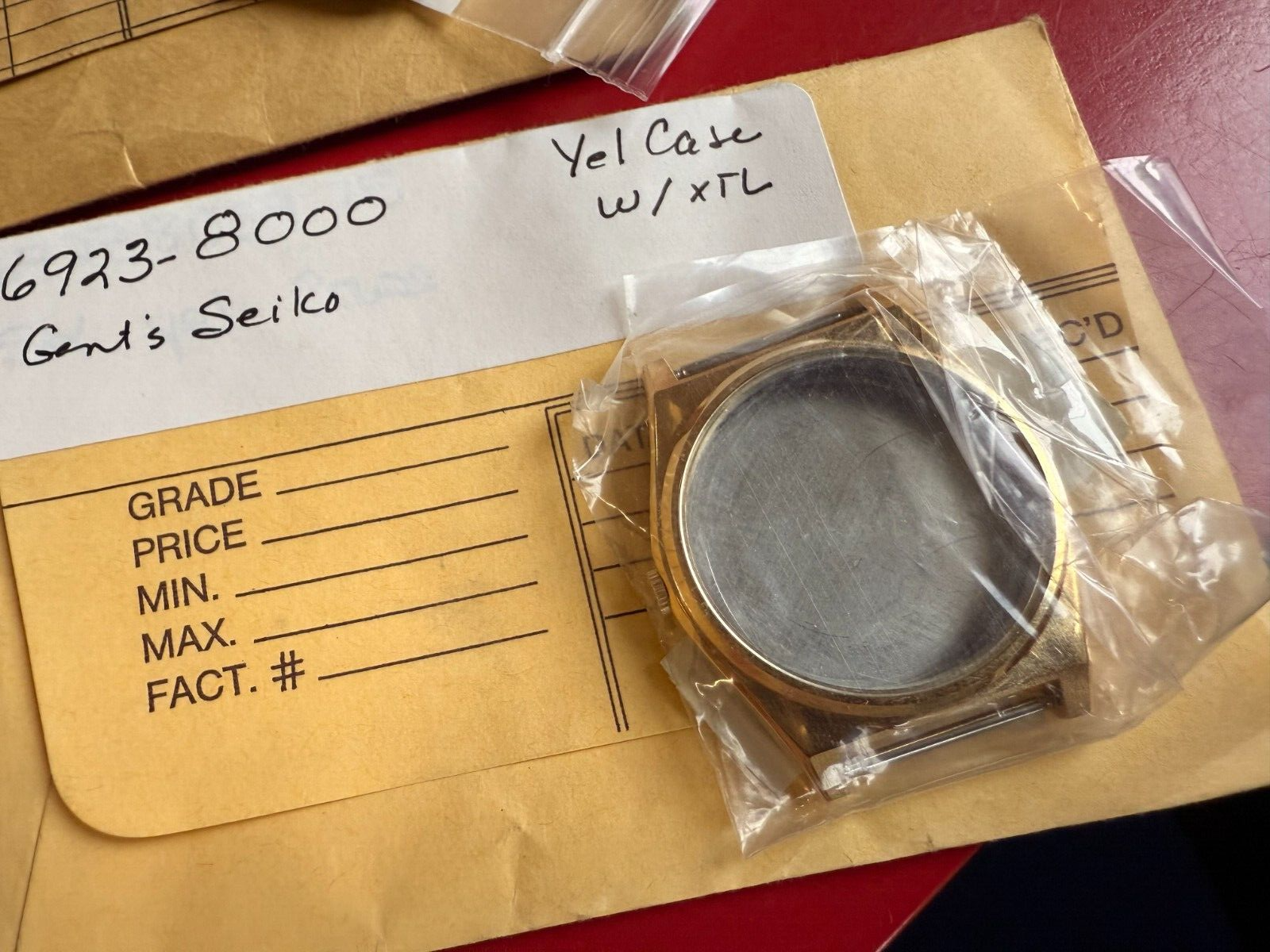 Seiko vintage degli anni '80 degli anni '80 La custodia per orologio da uomo indietro Crystal Gold XTL # 6923-8000 Nota: questo caso e relativamente piatto e non bobble ma bello Questo e un pezzo di storia. Se fissi i vecchi orologi, sei fortunato. Non sono un esperto di orologi. Ho comprato un sacco di vecchie parti di orologi da un'azienda di riparazione di orologi familiari che e andata all'asta. Erano in attivita da 100 anni. Per favore, controlla le mie altre parti di orologi vintage che elencheremo di più nel prossimo numero di mesi. Ti daro un affare se vuoi più ordini !! Nave USA gratuita
