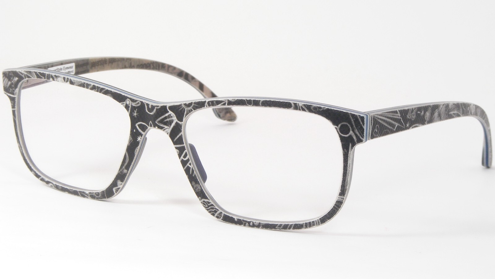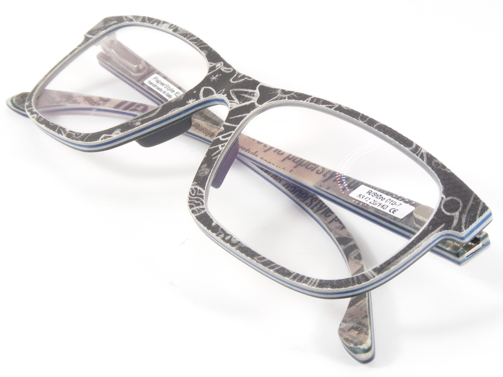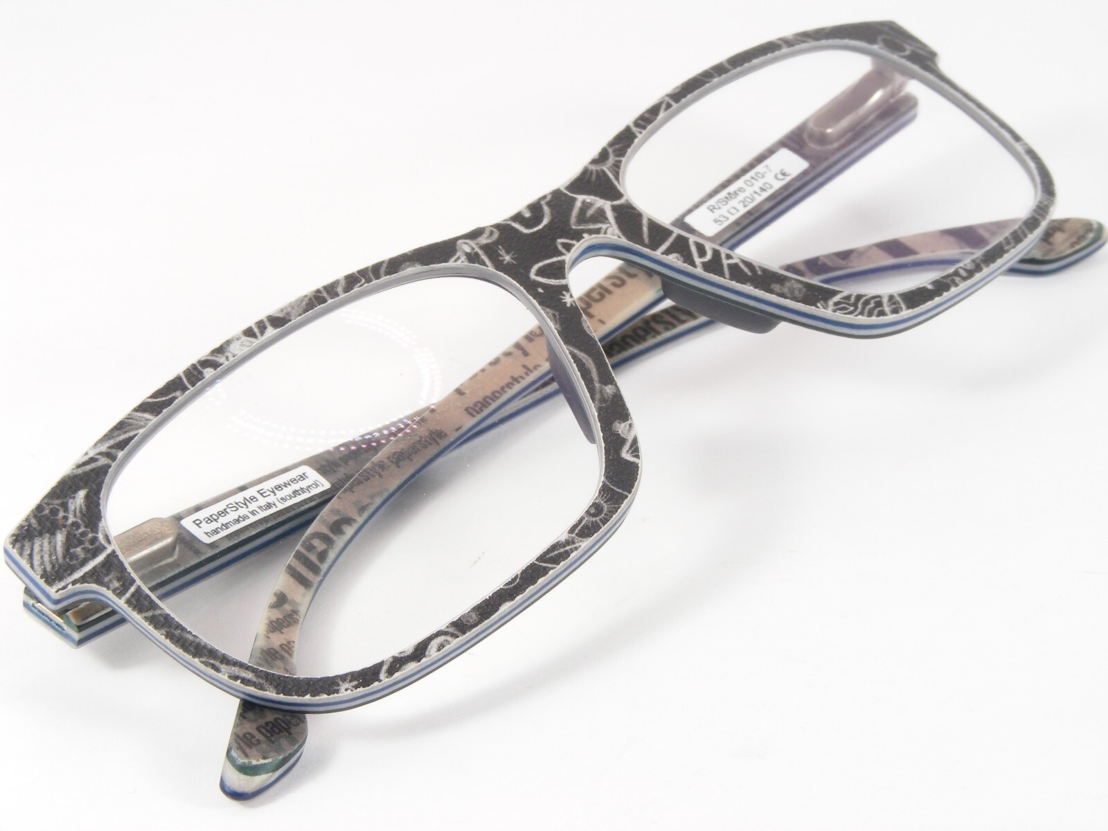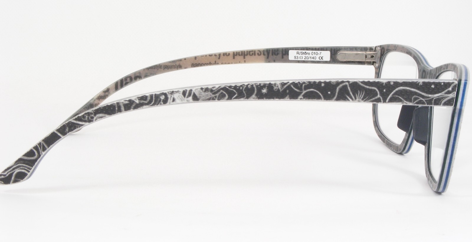 Paper glasses? - No problem for paper-style. Like all paper-style frames, the paper-style R/Stere 010 is made of paper and resin. Several layers of paper and resin are pressed together and shaped to create the unusual glasses from paper-style. It doesn't matter whether it's upbeat or plain on the outside, every paper-style pair of glasses lets your material show through on the inside. Unfortunately, due to the manufacturing process, no anatomical adjustment of paper-style glasses is possible.