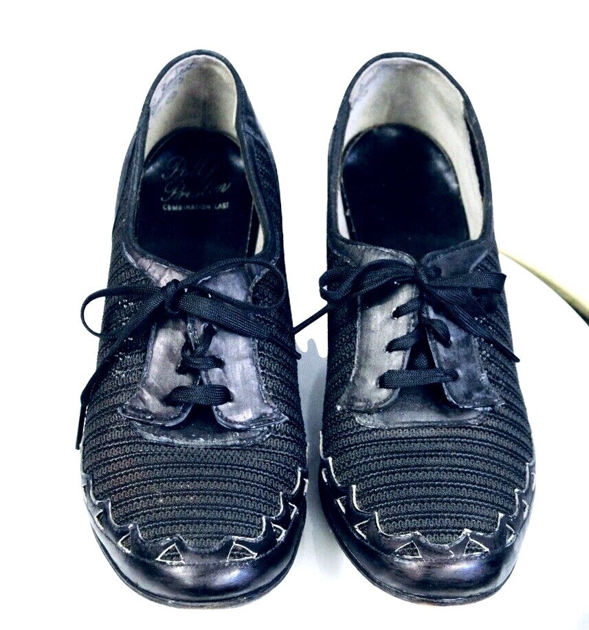 1930s-40s VTG Polly Preston Shoes Black Mesh Spectator Sz 6 C Oxford Rockabilly