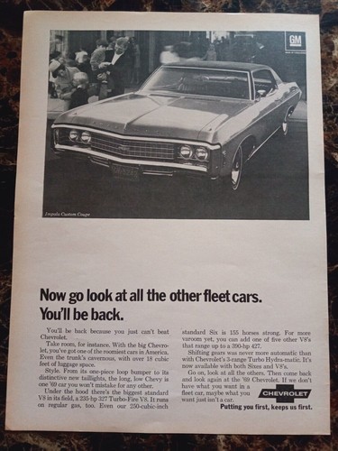 Chevrolet Impala Custom Coupe Car GM Chevy 1968 Vintage Print Ad