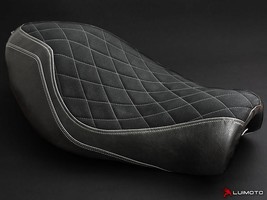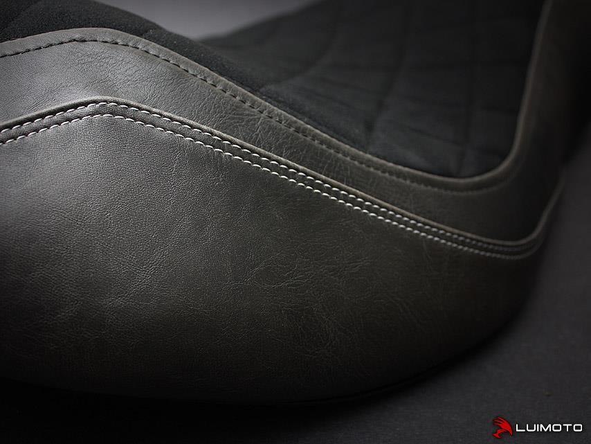 Introducing the Harley Davidson Sportster Iron 883 Diamond Edition seat cover. This seat cover features our luxurious synthetic suede with diamond stitching. The rest of the seat cover is surrounded by our premium vintage vinyl complimented with contrast stitching. The angles, curves, and materials all come together to complete the look of your cruiser. Stand out with the finishing touch of Luimoto.