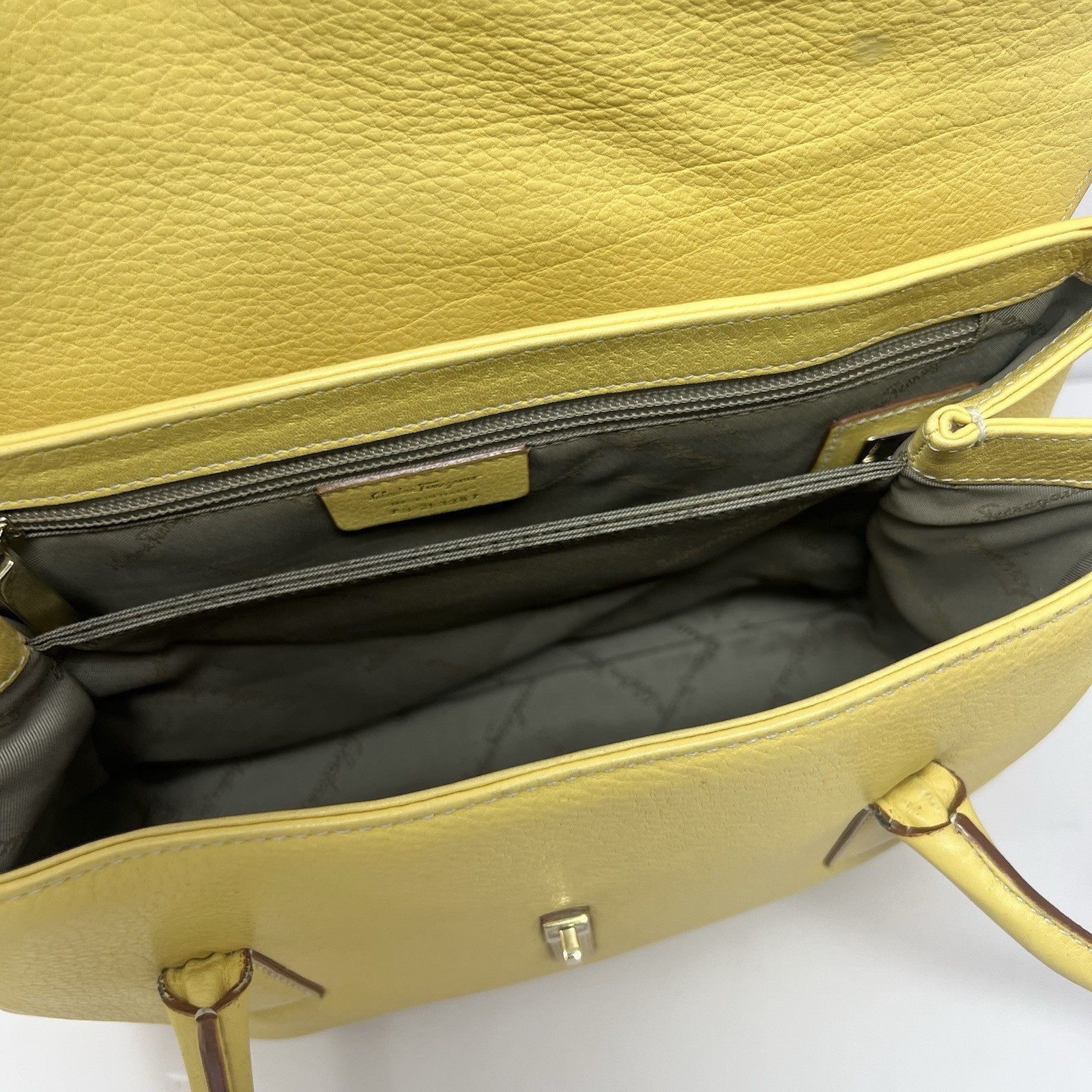 Vintage Salvatore Ferragamo Yellow Leather Gancini Flap Handbag Tote & Wallet