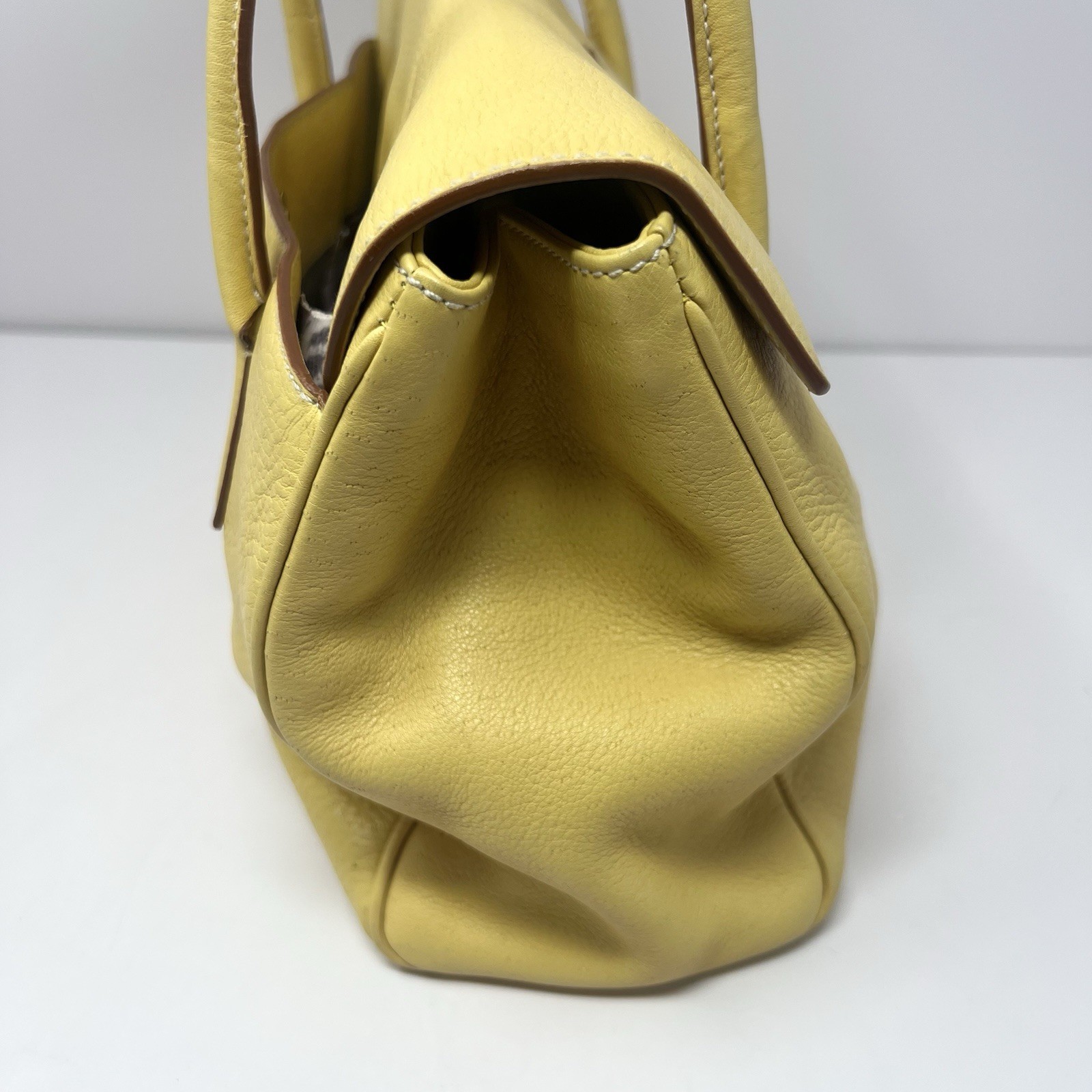 Vintage Salvatore Ferragamo Yellow Leather Gancini Flap Handbag Tote Wallet