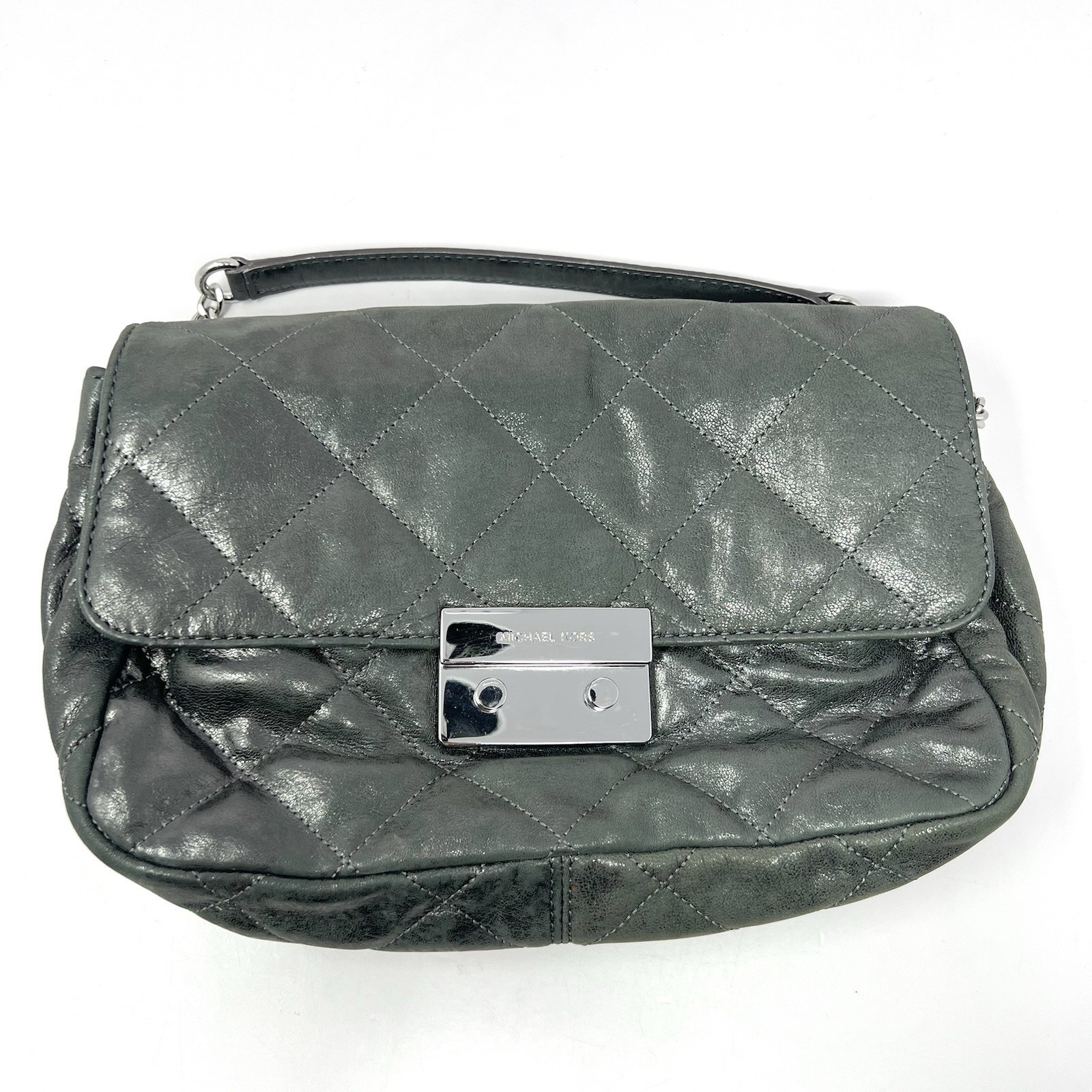 Michael Kors Sloan Crossbody Shoulder Bag Quilted Grey Leather Chain Strap GUC