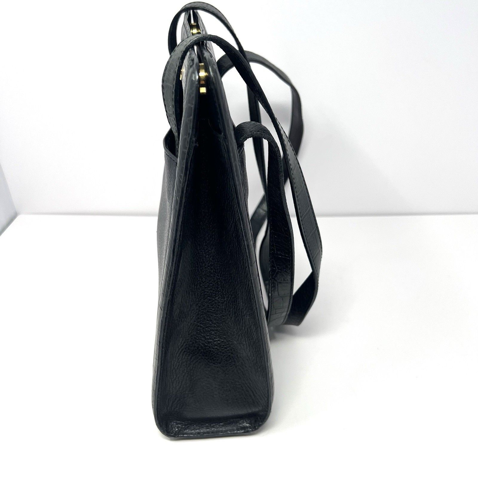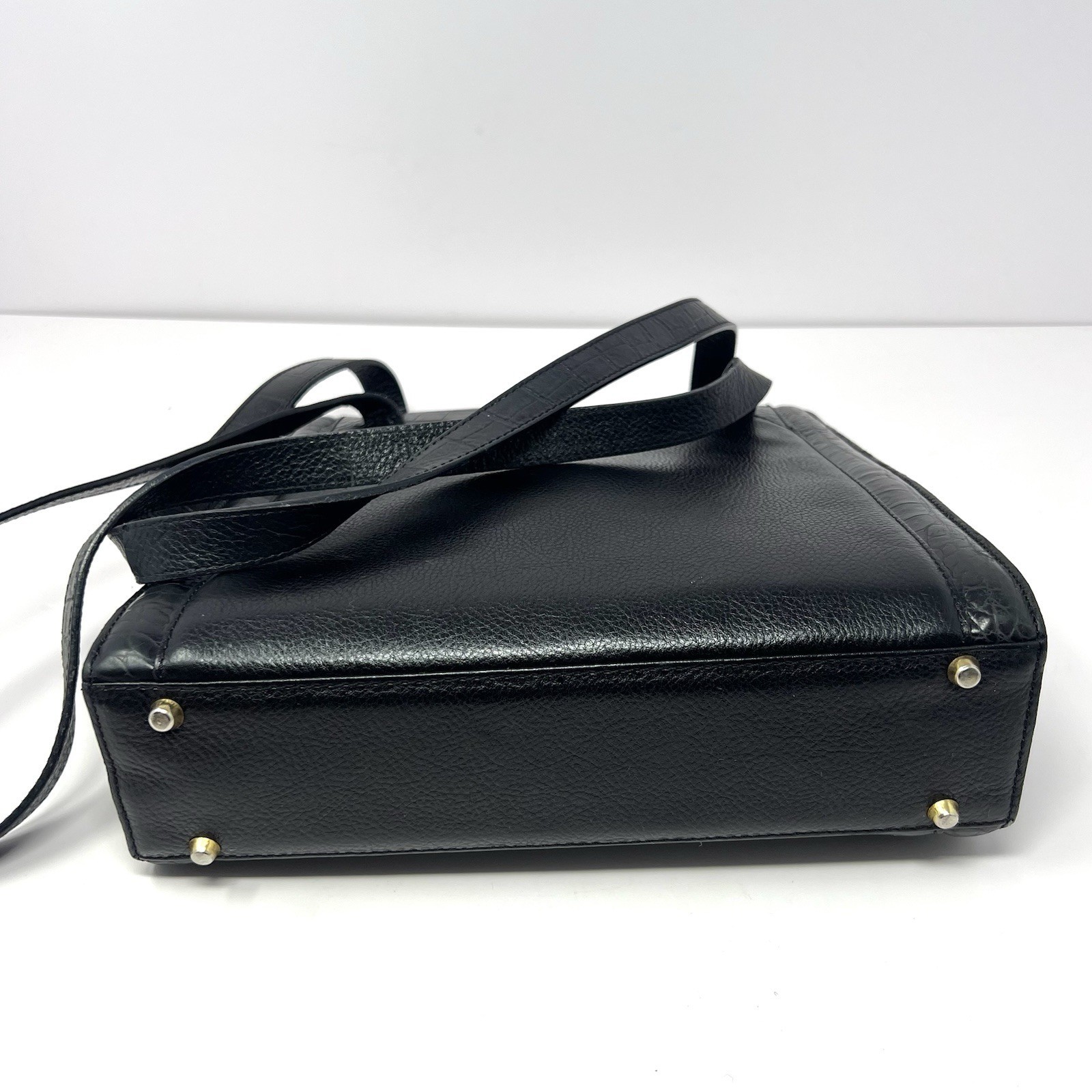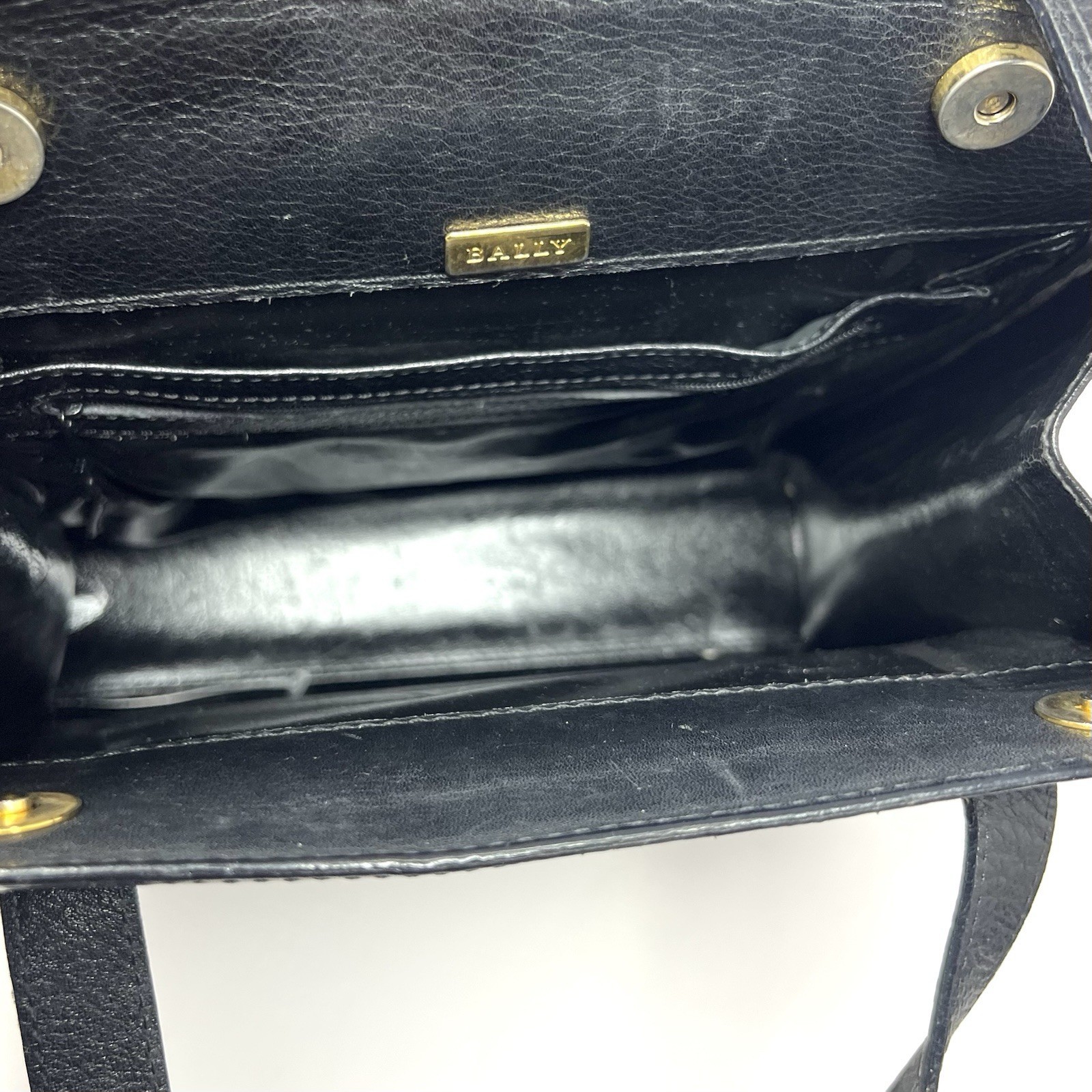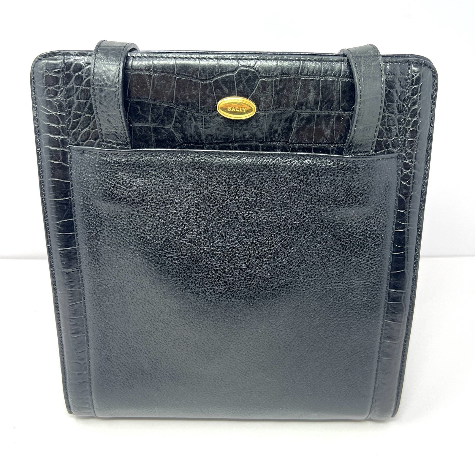 Vintage Bally Handbag Tote Bag Black Pebbled Leather Croc Embossed Purse 80s 90s