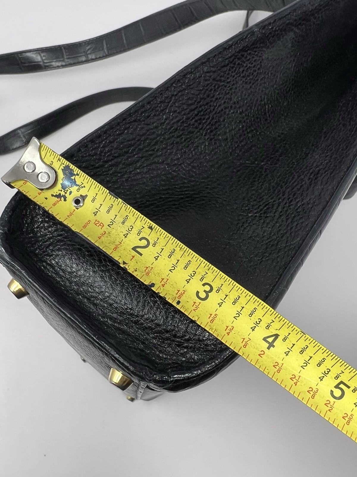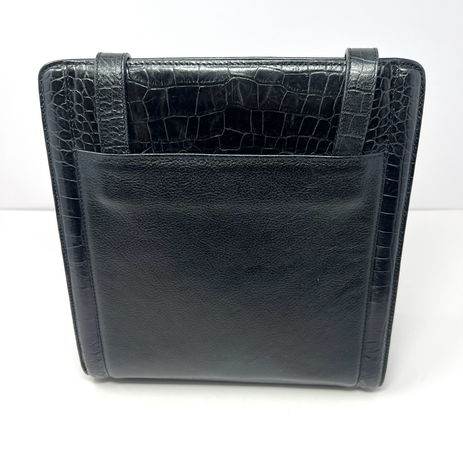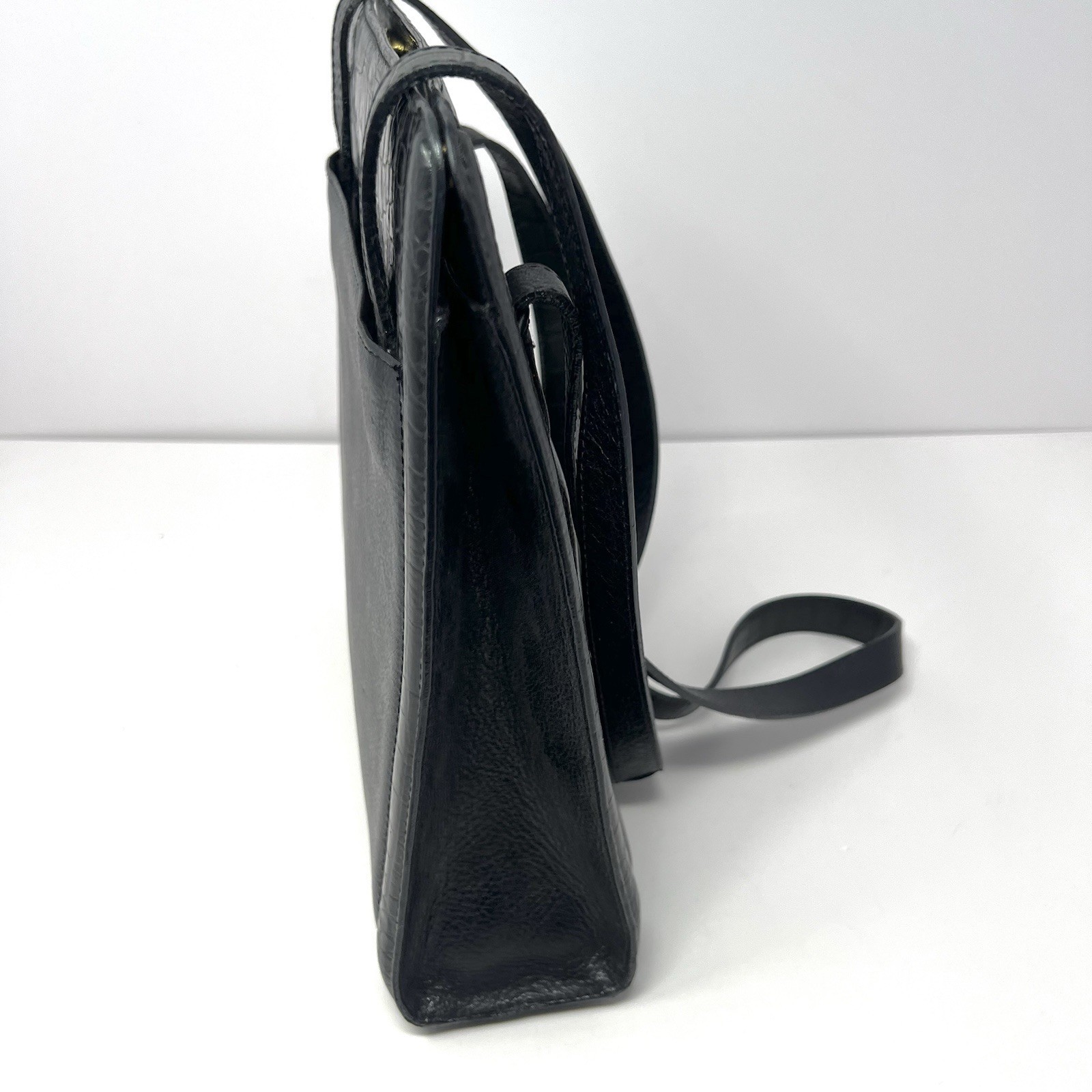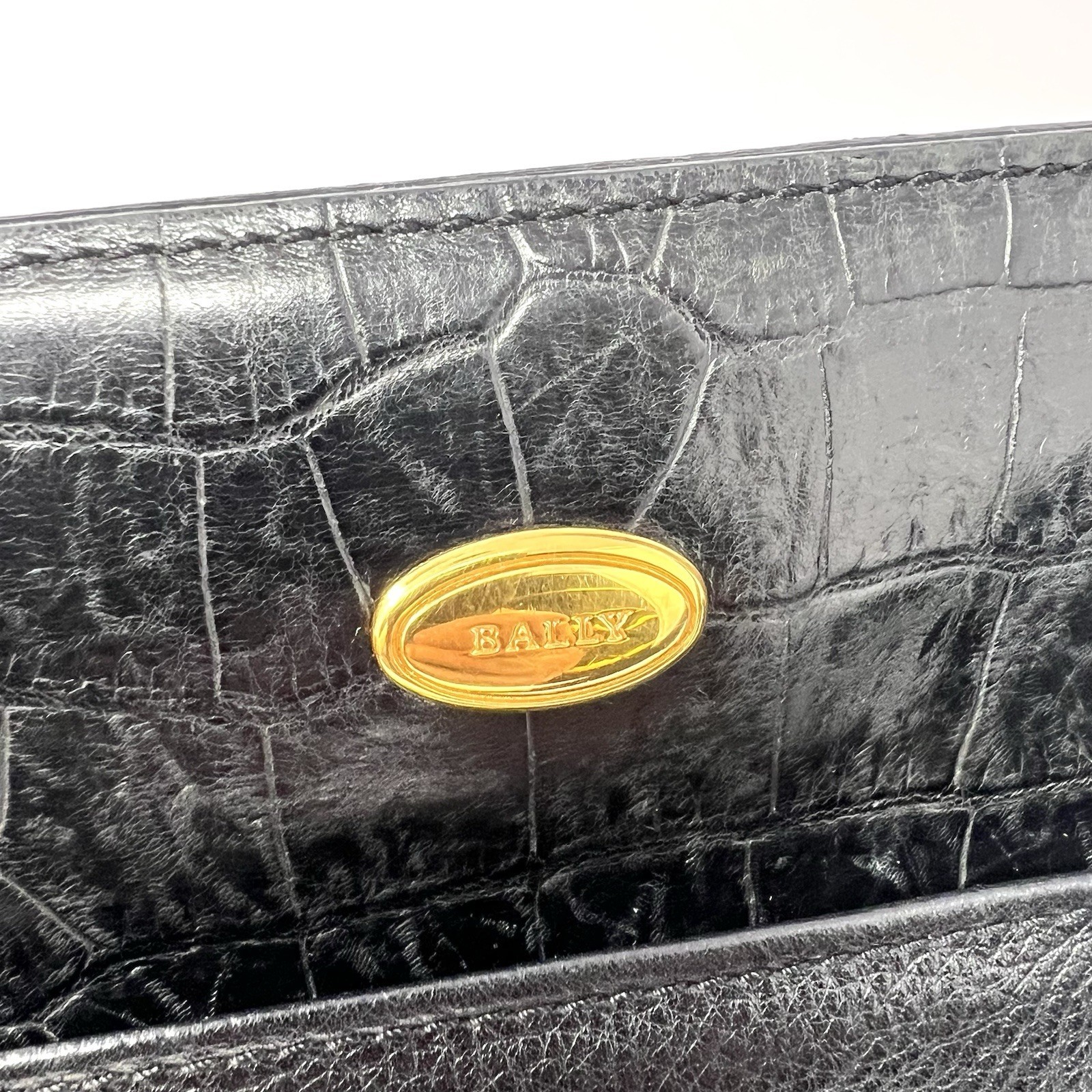 Vintage Bally Handbag Tote Bag Black Pebbled Leather Croc Embossed Purse 80s 90s