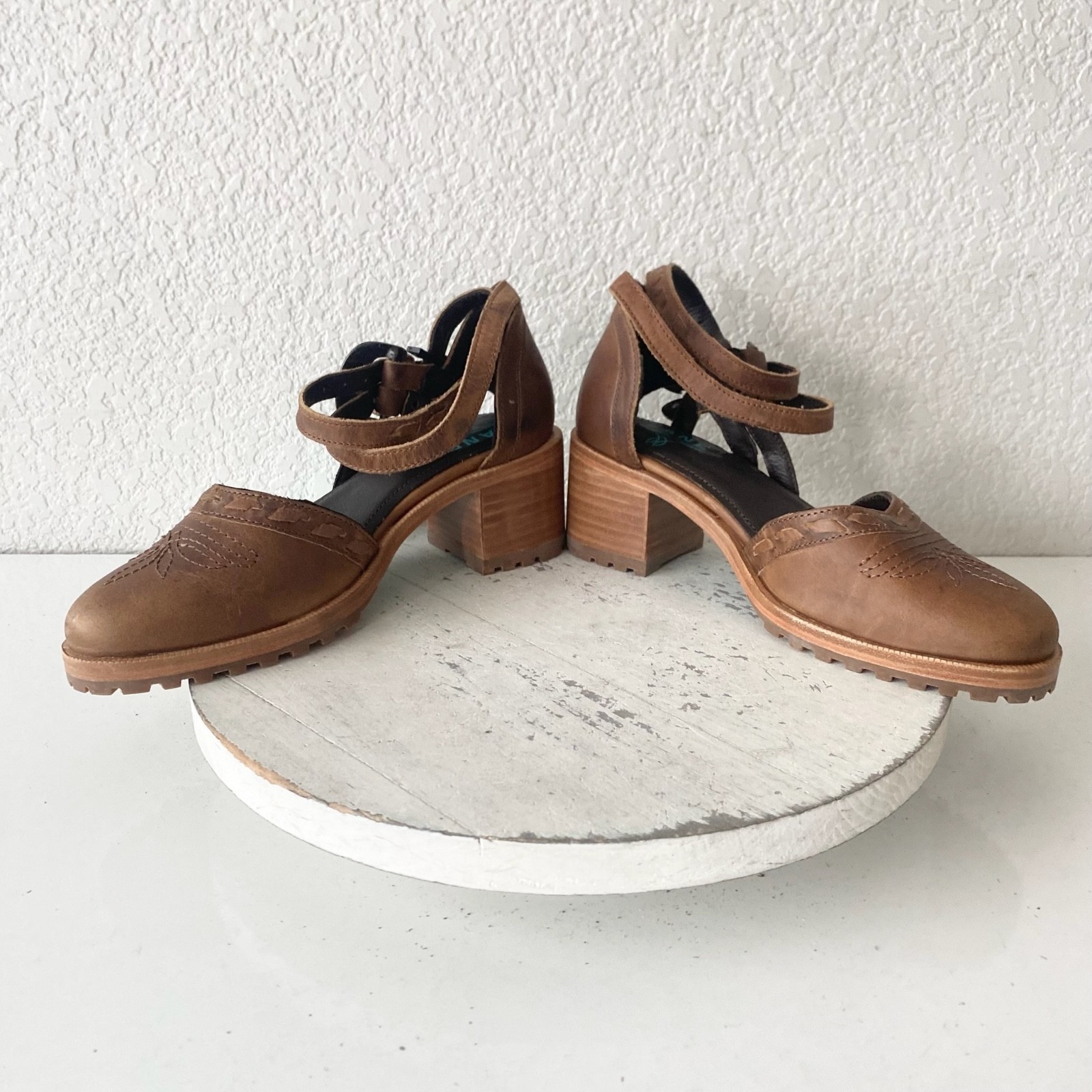 Lane Boots Womens Western Heels 7.5 Brown Casual Sandals Cowgirl Leather Buckle
