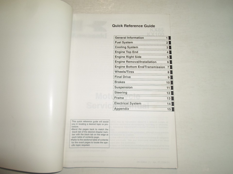 2001 2002 2003 2004 2005 Kawasaki KX85 KX100 Servizio Riparazione Negozio Manual