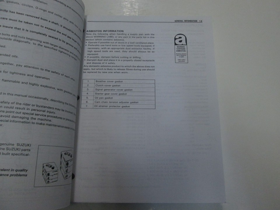 instructions etape par etape, montage/demontage, illustrations/schemas/depannage eclates, excellent manuel a avoir lorsque vous possedez une SUZUKI et gardera votre MOTO sur la route. Ce manuel vous fera economiser de l'argent en reparations/entretien.