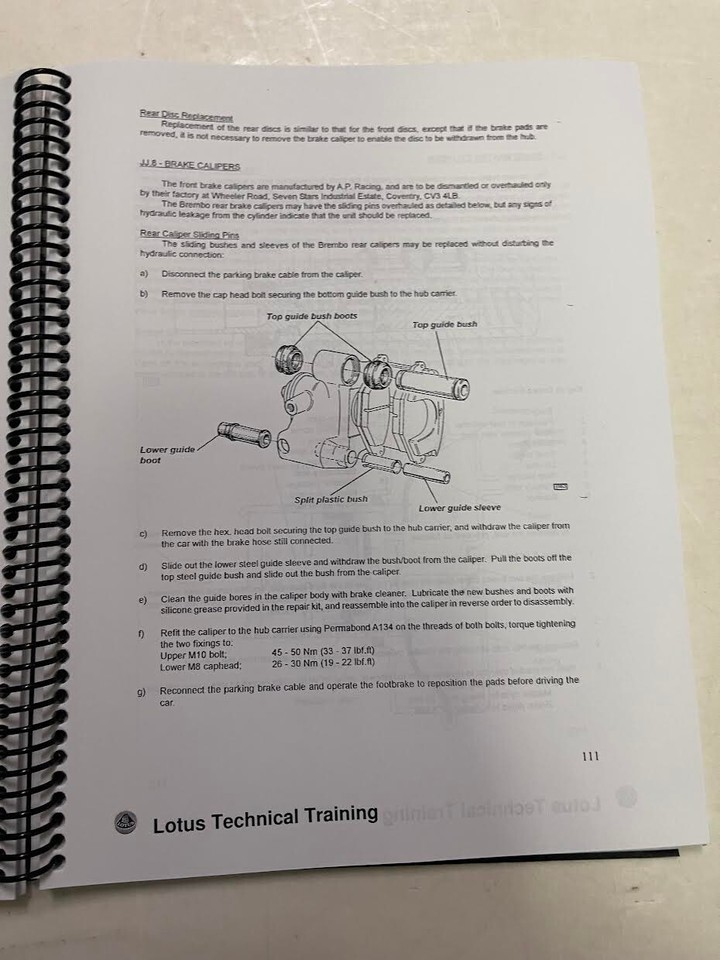 Lotus Auto USA Formazione Course Notes Esprit 91 My Frenata Sistema Delco