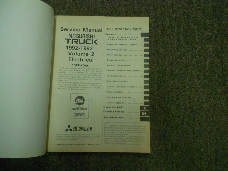 1992-1993 Manuel de reparation du service de camion Mitsubishi Volume 2 Electrical