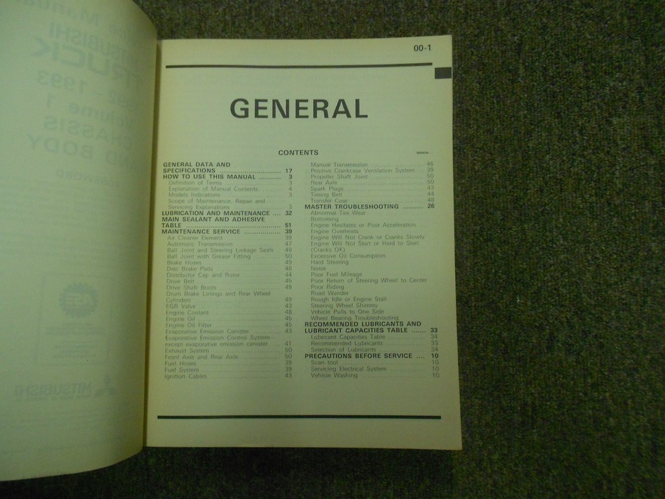 1992-1993 Manuel de reparation des services de camion Mitsubishi Volume 1 Chassis et corps