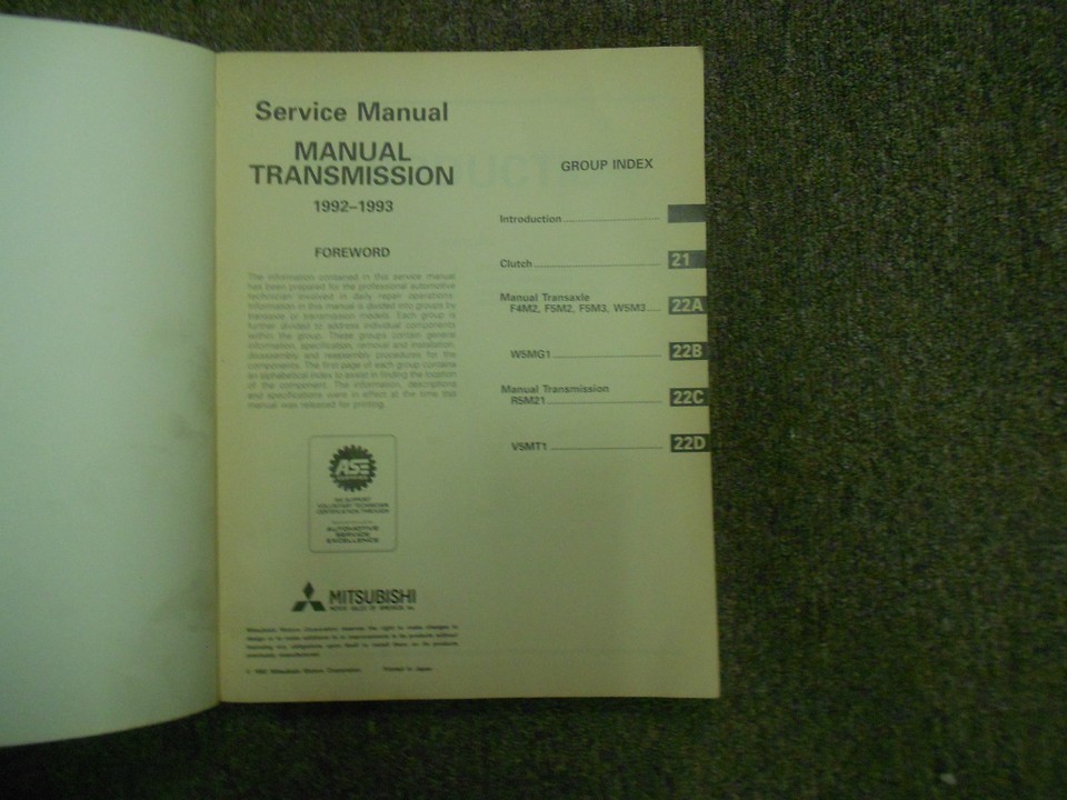 1992-1993 Manuel du service de transmission du manuel Mitsubishi