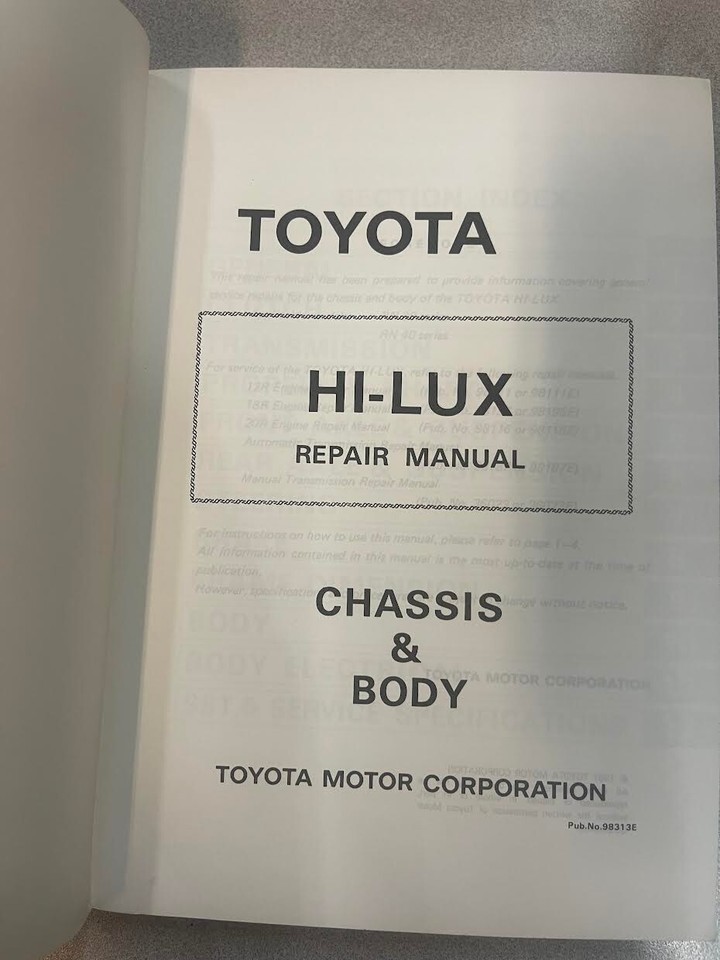 Manuel d'entretien de l'atelier de reparation de camions Toyota HI-LUX 98313E Serie RN 30 Serie RN 40
