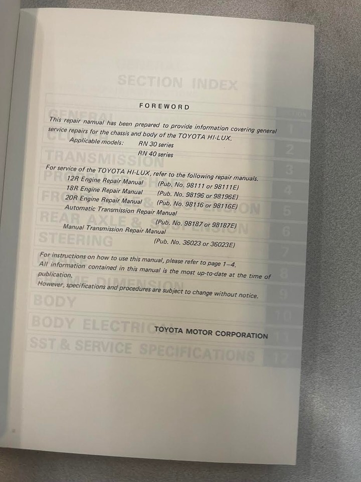 Toyota Camion Reparation Atelier Service Manuel 98313E Rn 30 Series Rn 40 Series