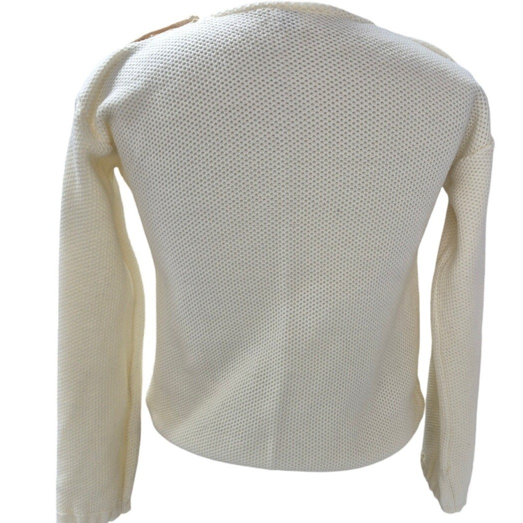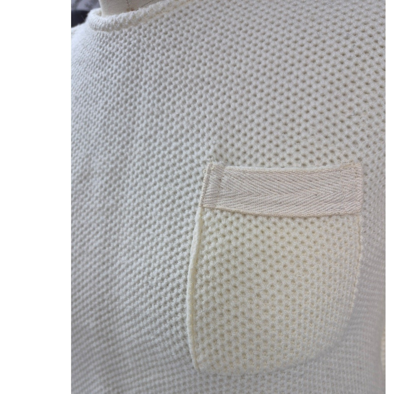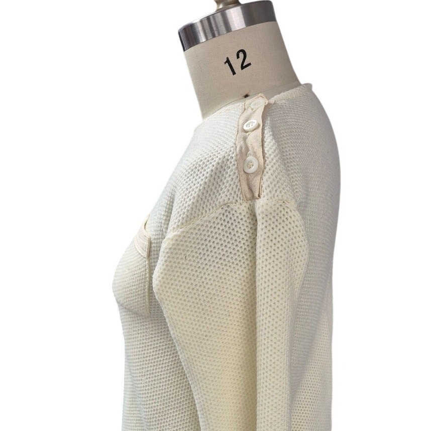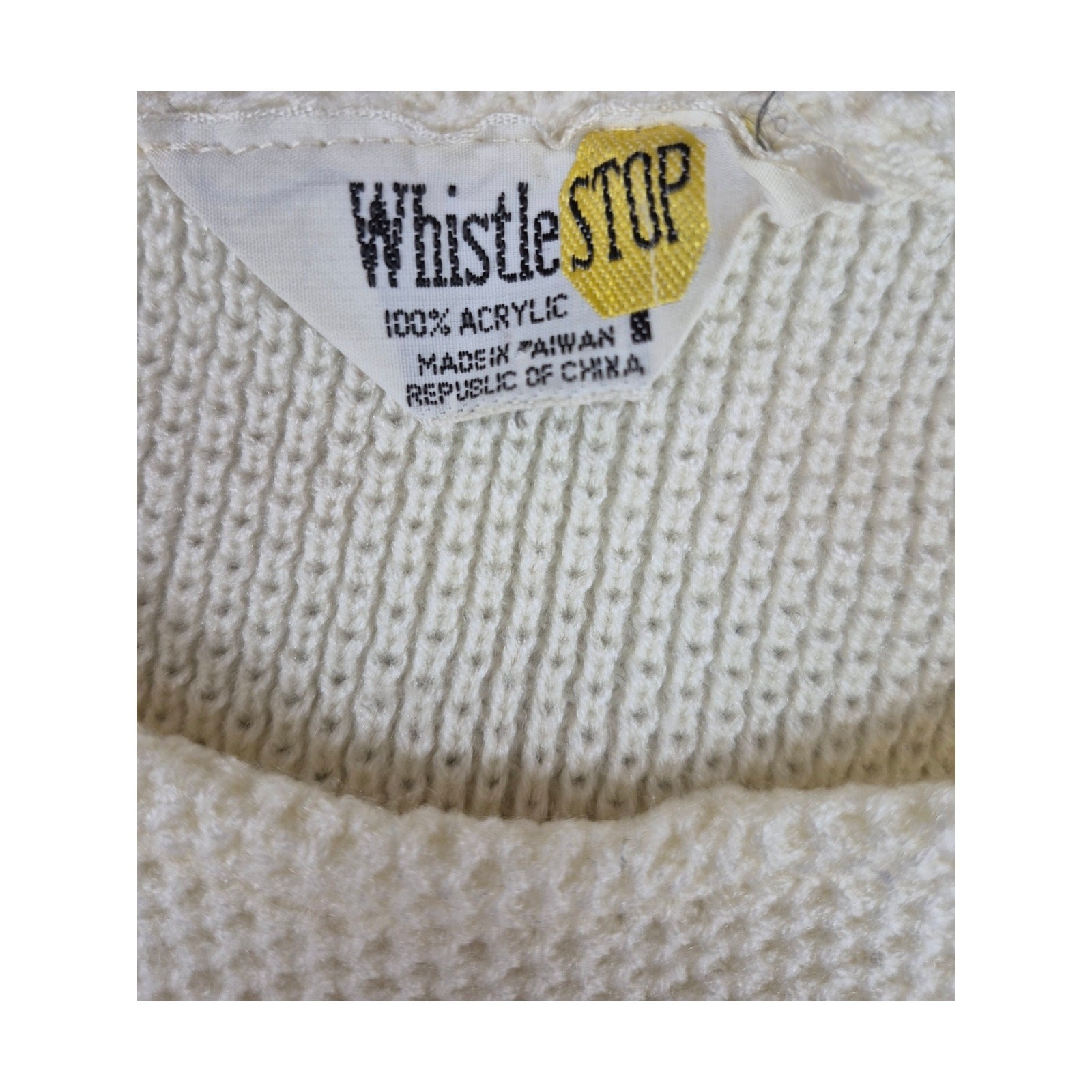 Vtg 70s 80s Ivory Whistle Stop 100% Acrylic Waffle Weave Top, Button Shoulder, Drawstring Waist, Women Size M, in as-found condition, no flaws noted. Made in Taiwan.
