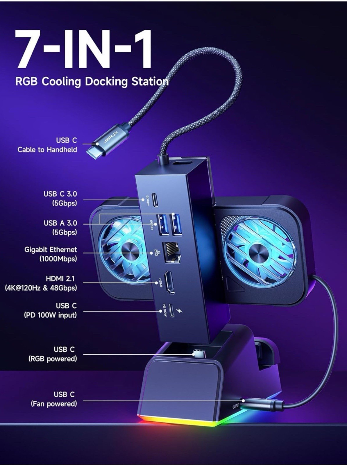 Ultimate 7-in-1 Dock for ROG Ally X with RGB Lighting, Gigabit Ethernet & More