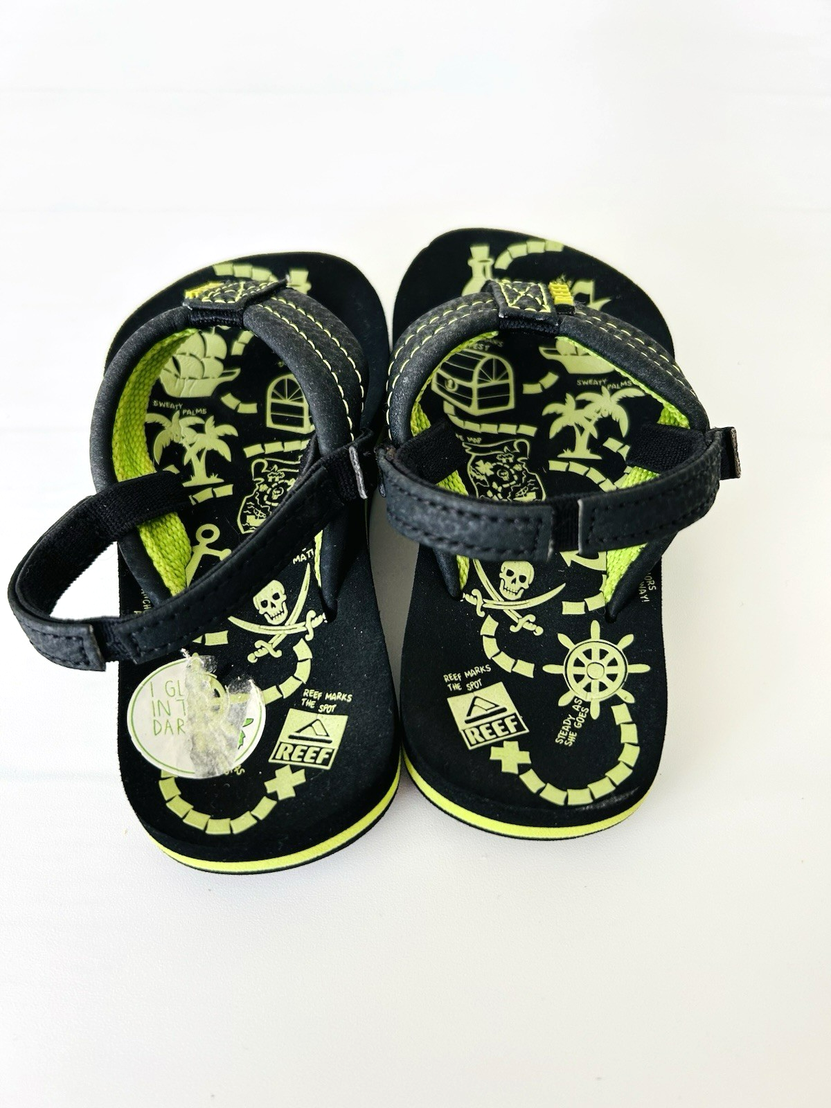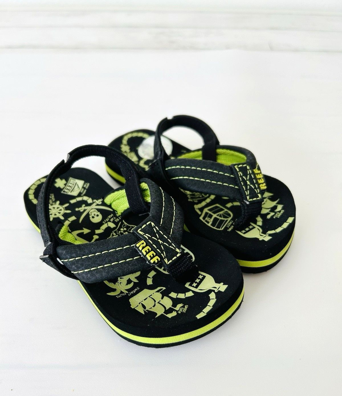 NWOT Reef Toddler Flip Flop Sandal Slip On Black Green Pirate 3/4