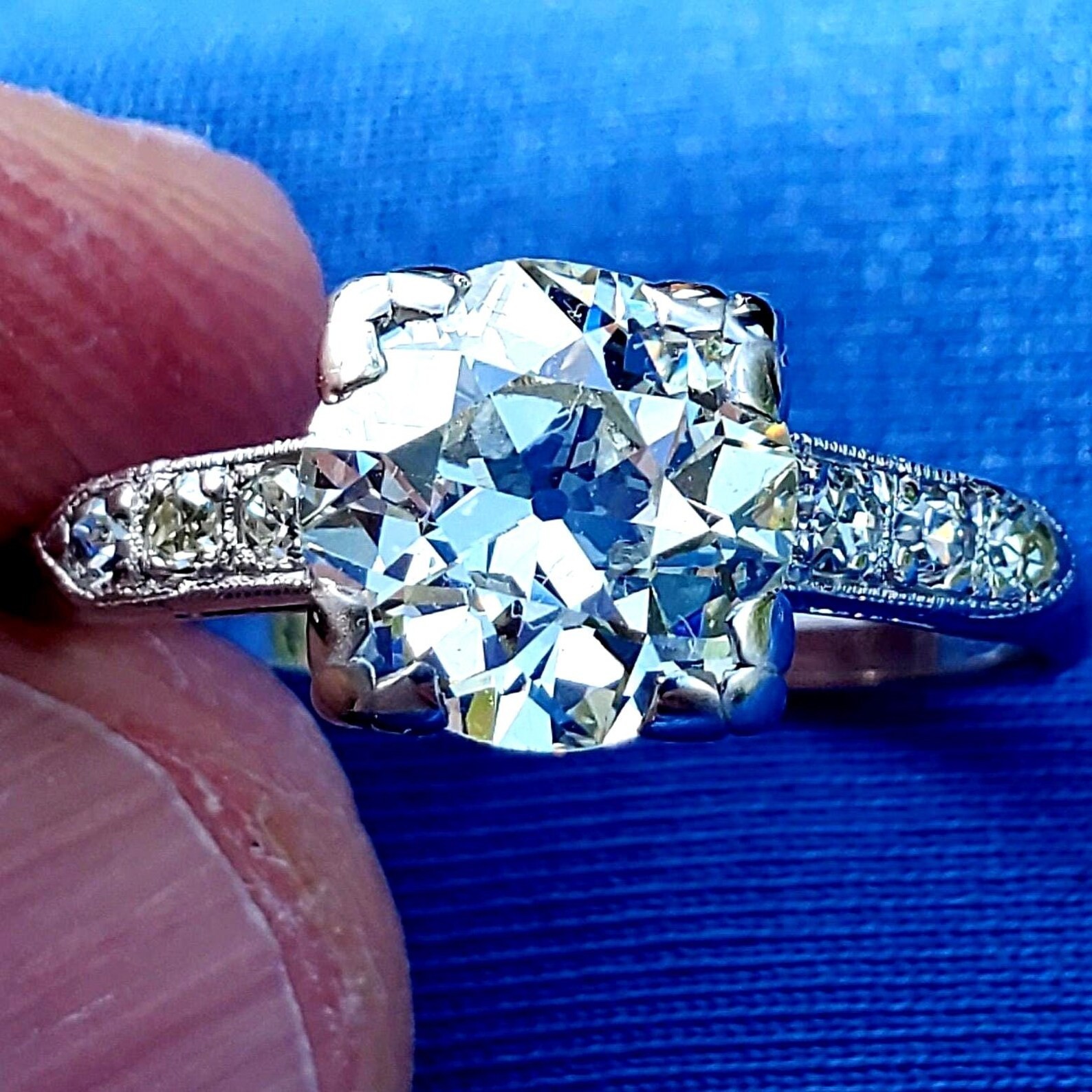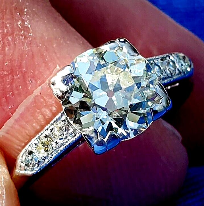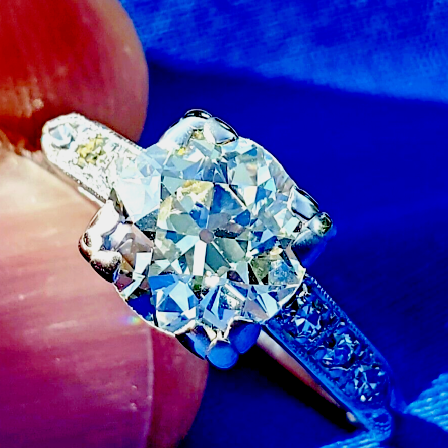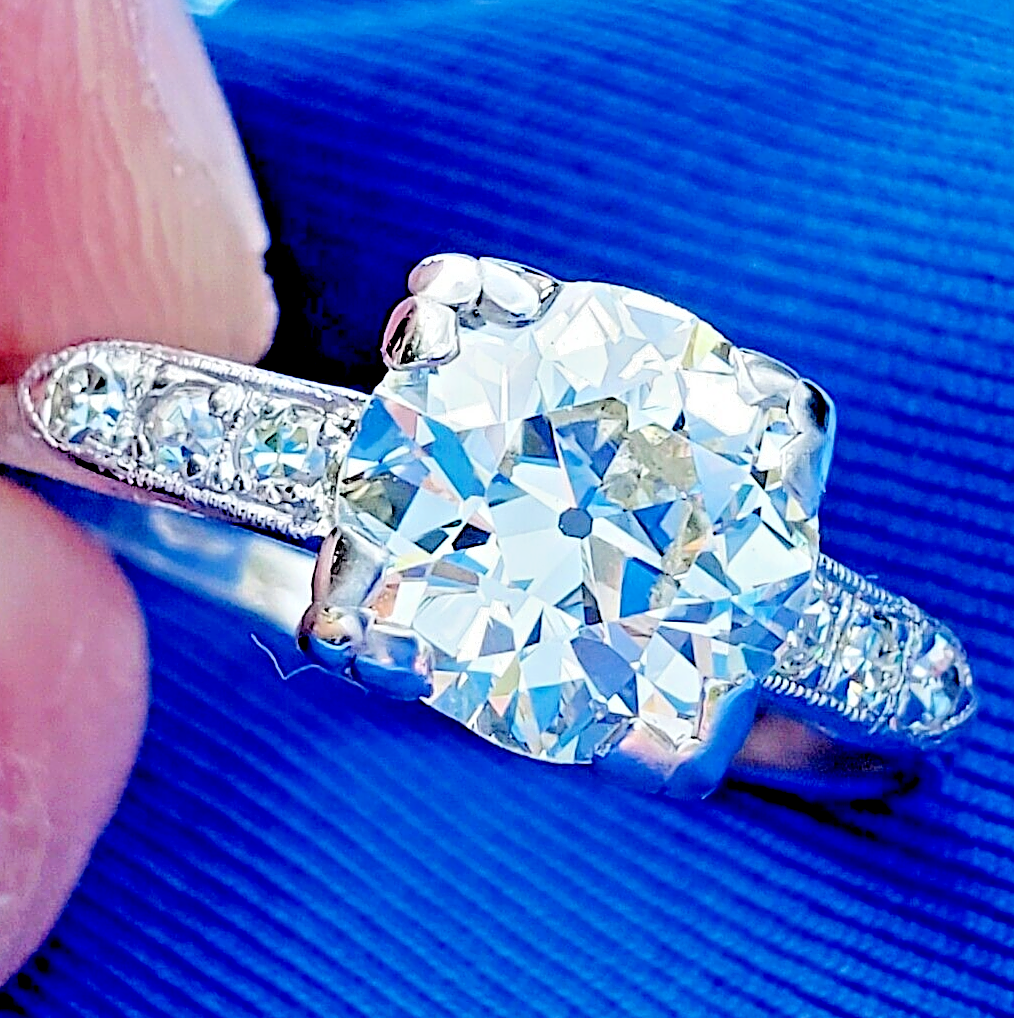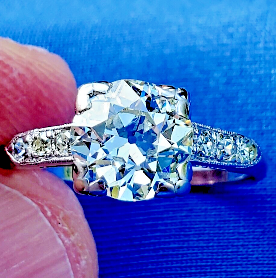 Earth mined Diamond Deco Engagement Ring Antique Solid Platinum Bridal Solitaire