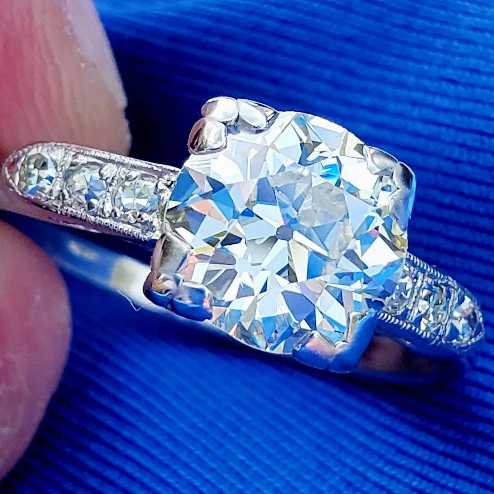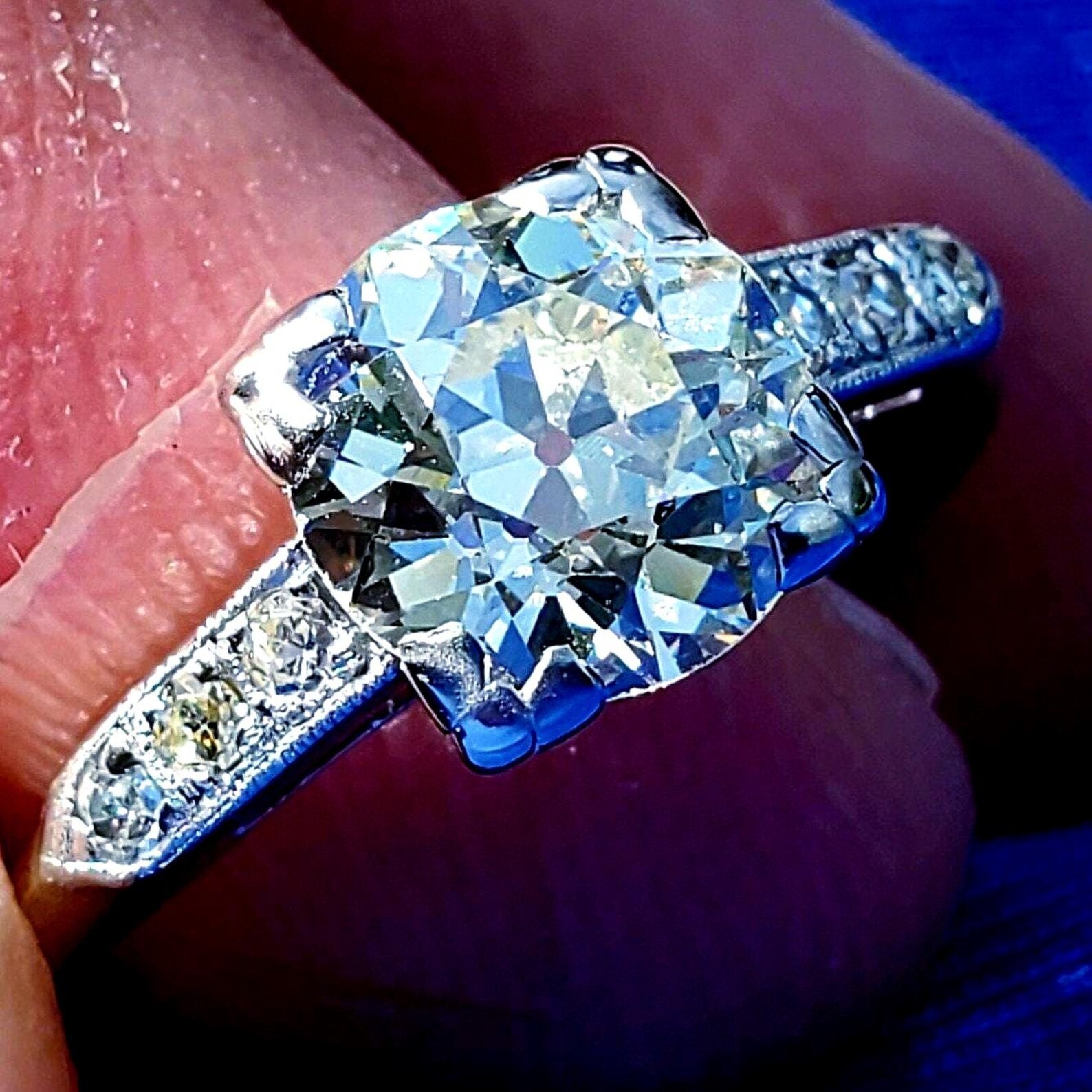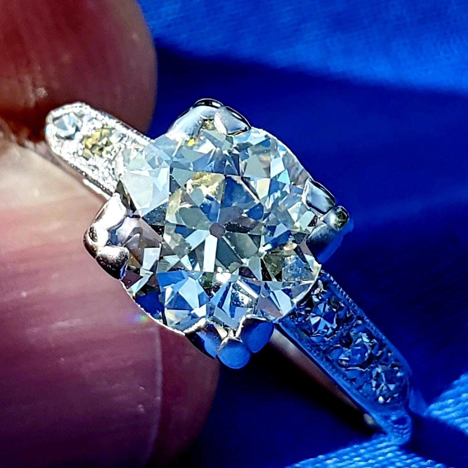 Earth mined Diamond Deco Engagement Ring Antique Solid Platinum Bridal Solitaire